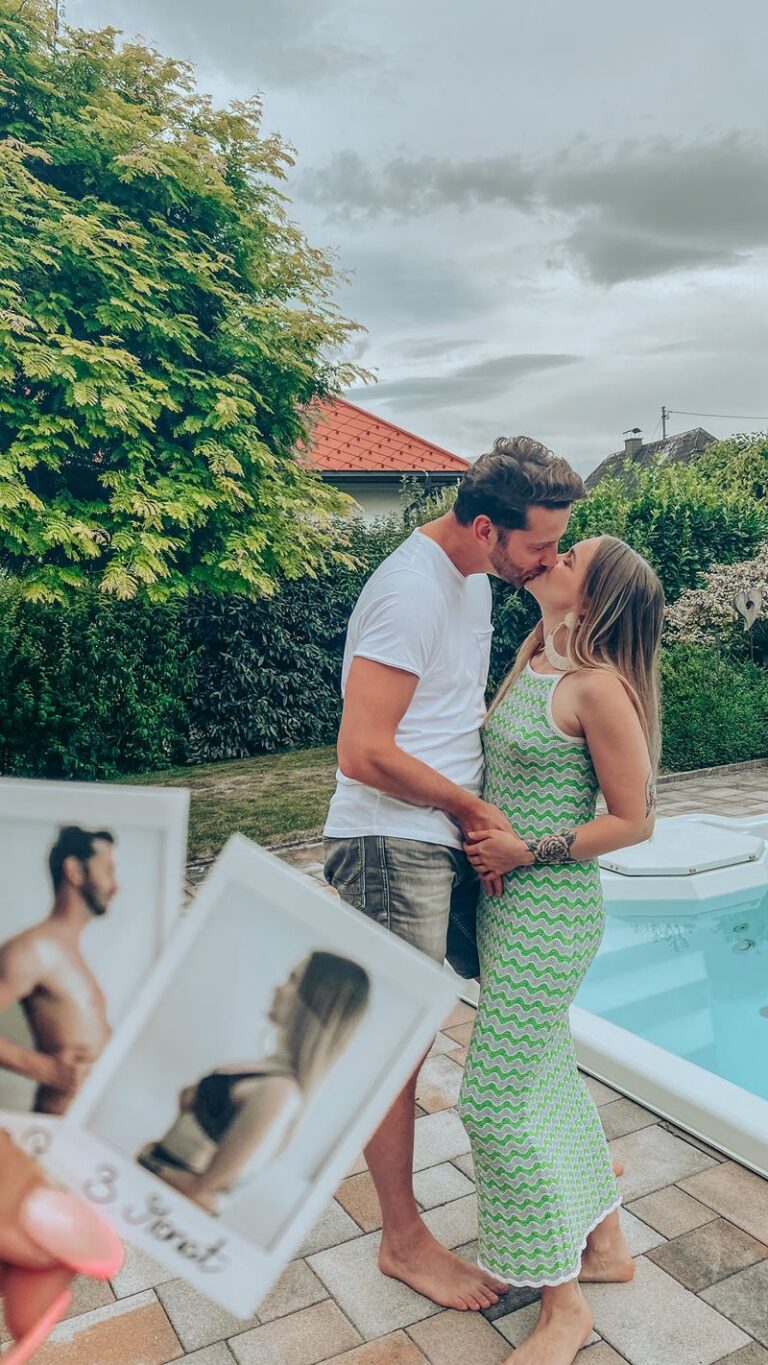 Nach dem ersten Schock über den positiven Schwangerschaftstest nun ganz glücklich: Sinah Edhofer und ihr Freund Andi. ©Marko Mestrovic, Emilia Edhofer