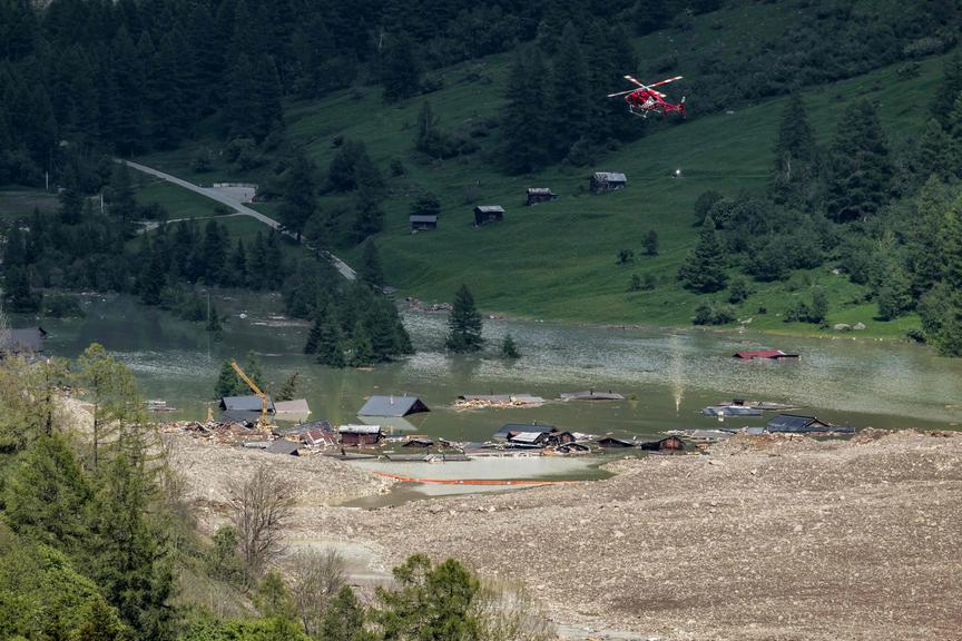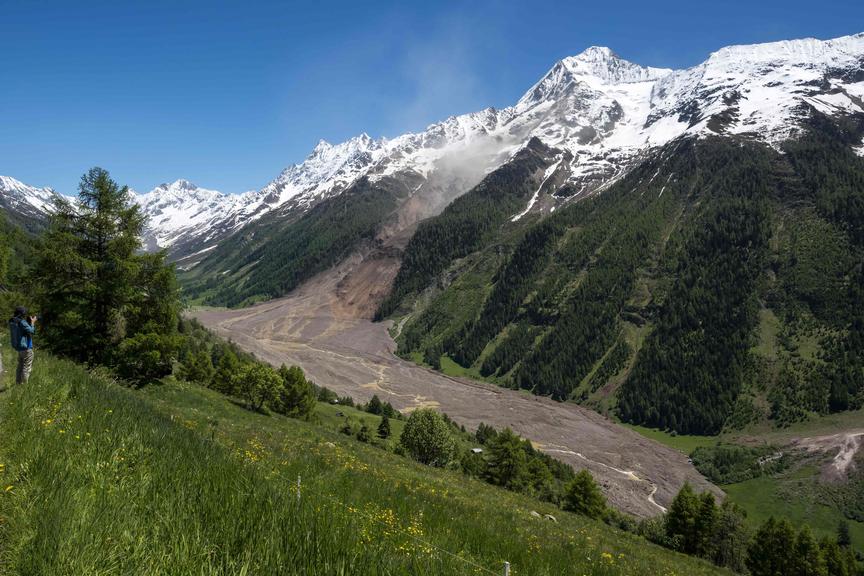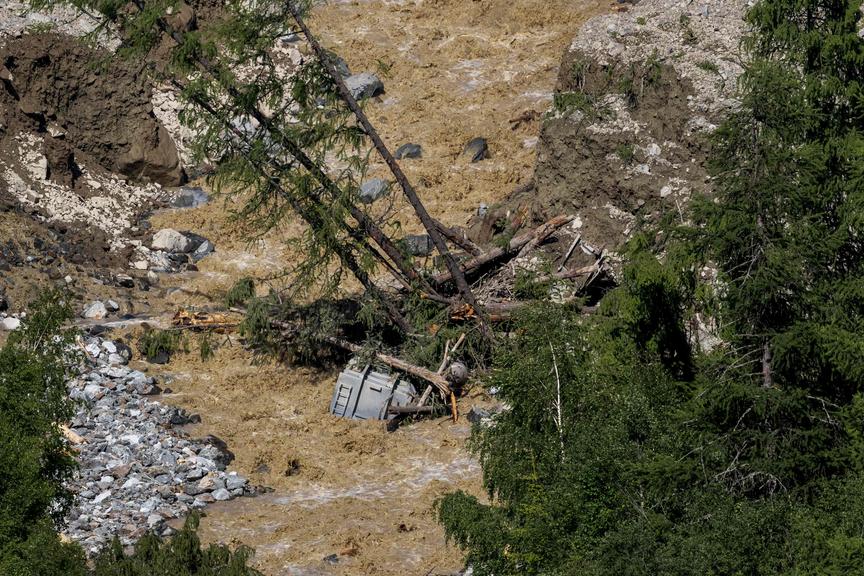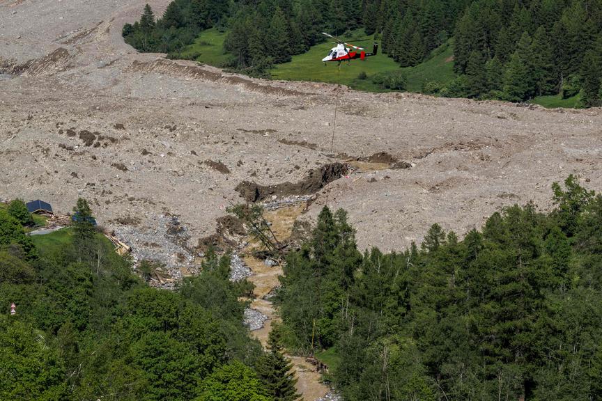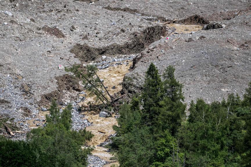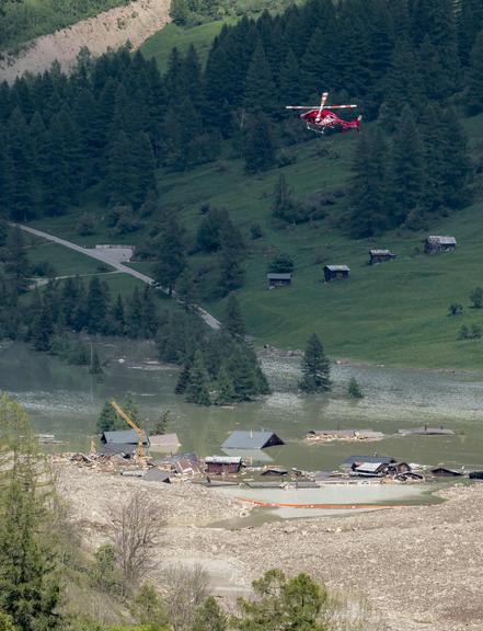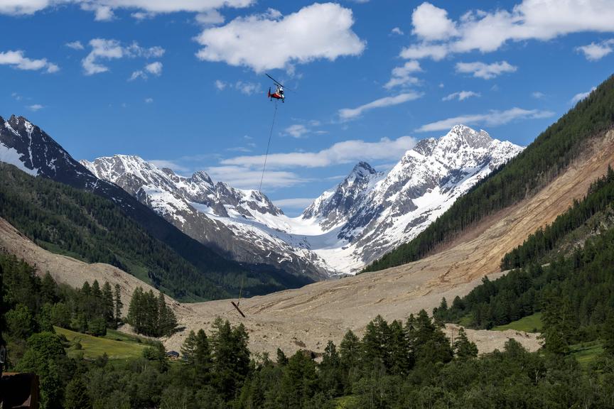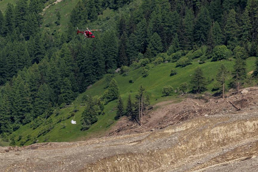 "Bisher haben wir keine größeren Risse oder Einstürze festgestellt", sagte Mayoraz der Zeitung. "Das kann sich jedoch ändern, wenn das Eis zu schmelzen beginnt." Es geht um das Eis im Schuttberg. Rund ein Drittel der neun Millionen Kubikmeter, die das Dorf und das Flussbett der Lonza nach dem Gletscherabbruch am vergangenen Mittwoch verschüttet haben, dürften Gletschereis sein, schätzen die Experten.