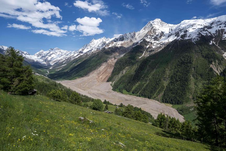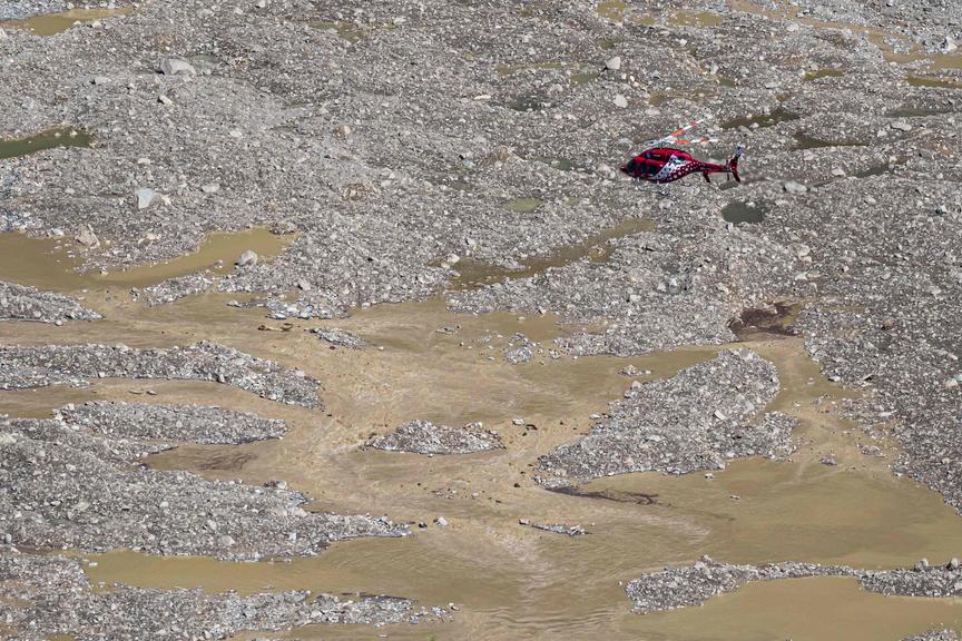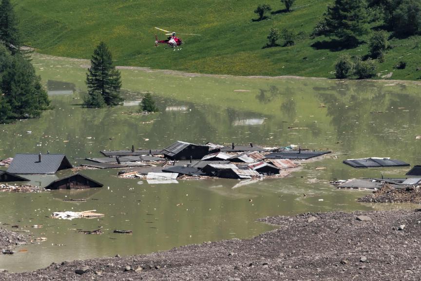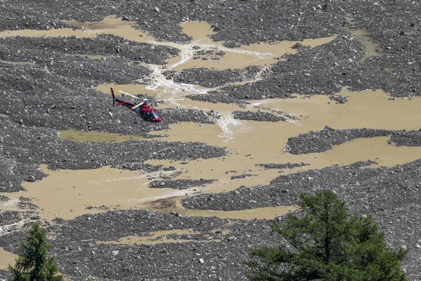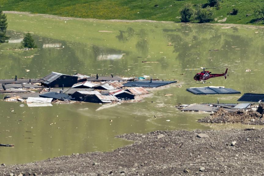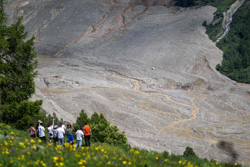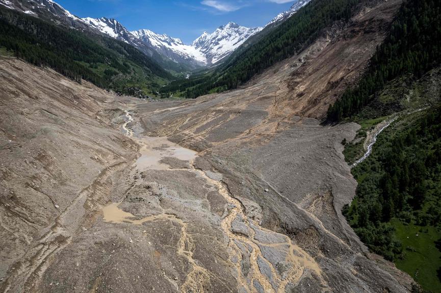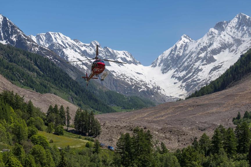 "Bisher haben wir keine größeren Risse oder Einstürze festgestellt", sagte Mayoraz der Zeitung. "Das kann sich jedoch ändern, wenn das Eis zu schmelzen beginnt." Es geht um das Eis im Schuttberg. Rund ein Drittel der neun Millionen Kubikmeter, die das Dorf und das Flussbett der Lonza nach dem Gletscherabbruch am vergangenen Mittwoch verschüttet haben, dürften Gletschereis sein, schätzen die Experten.