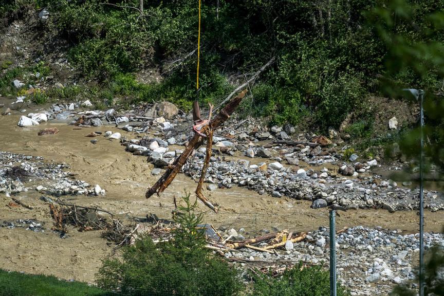 Nach den Unwettern war die Verbindung zwei Wochen lang unterbrochen gewesen. Im Bett des Wildbachs Fregnoley hatten sich im vergangenen Sommer wiederholt Muren zu Tal gewälzt. Der Wildbach soll nun gesichert werden.