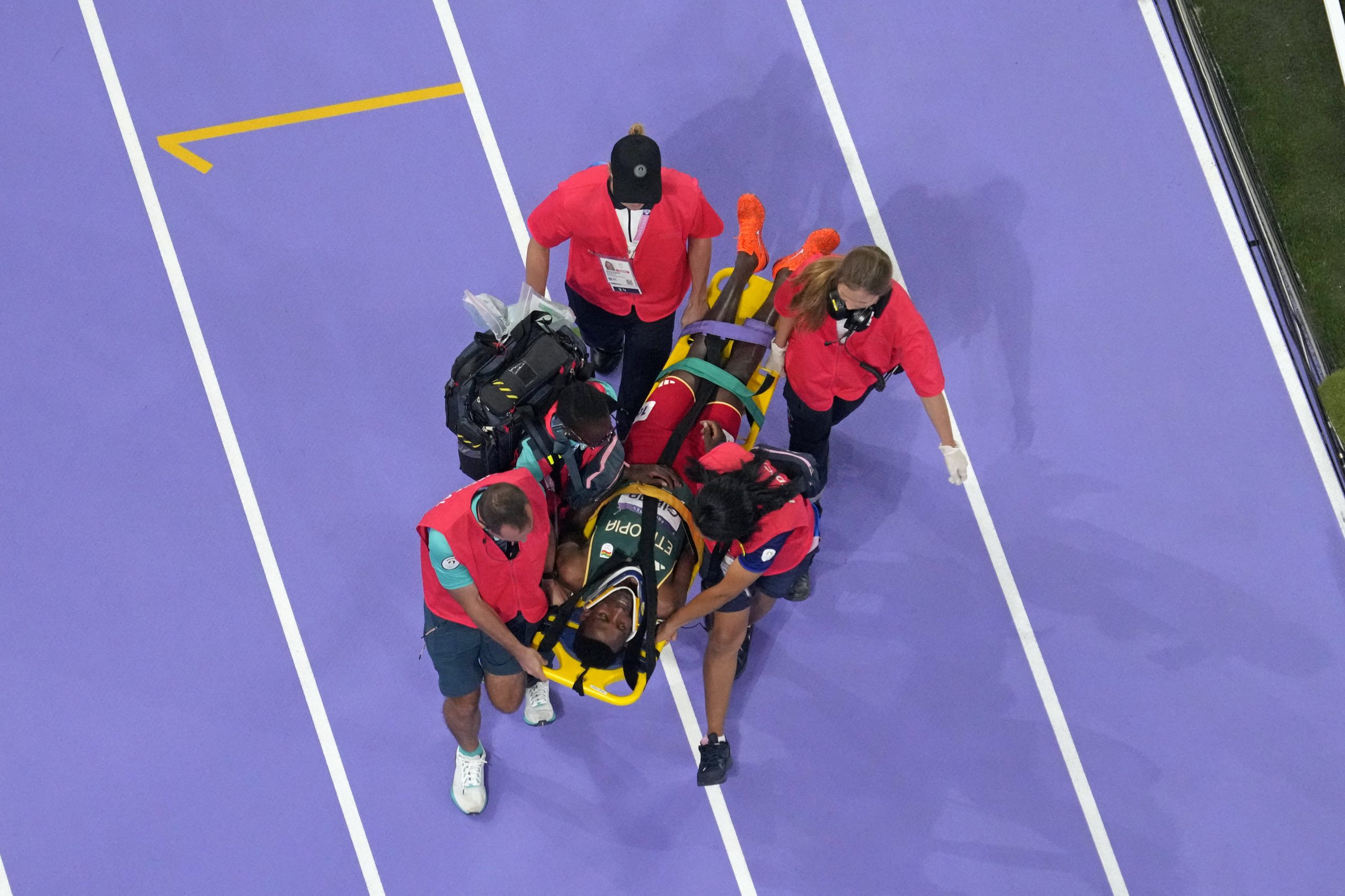 Gestikulierend rannten Helfer herbei und kümmerten sich um den Weltrekordhalter. Nach einigen Minuten Behandlungszeit wurde er unter aufmunterndem Jubel der Zuschauer aus dem Stade de France gebracht. An Girmas Hals war eine Halskrause zu sehen. Nach Informationen der französischen Sportzeitung "L'Equipe", die sich auf das äthiopische Team berief, sei Girma bei Bewusstsein und könne sprechen.