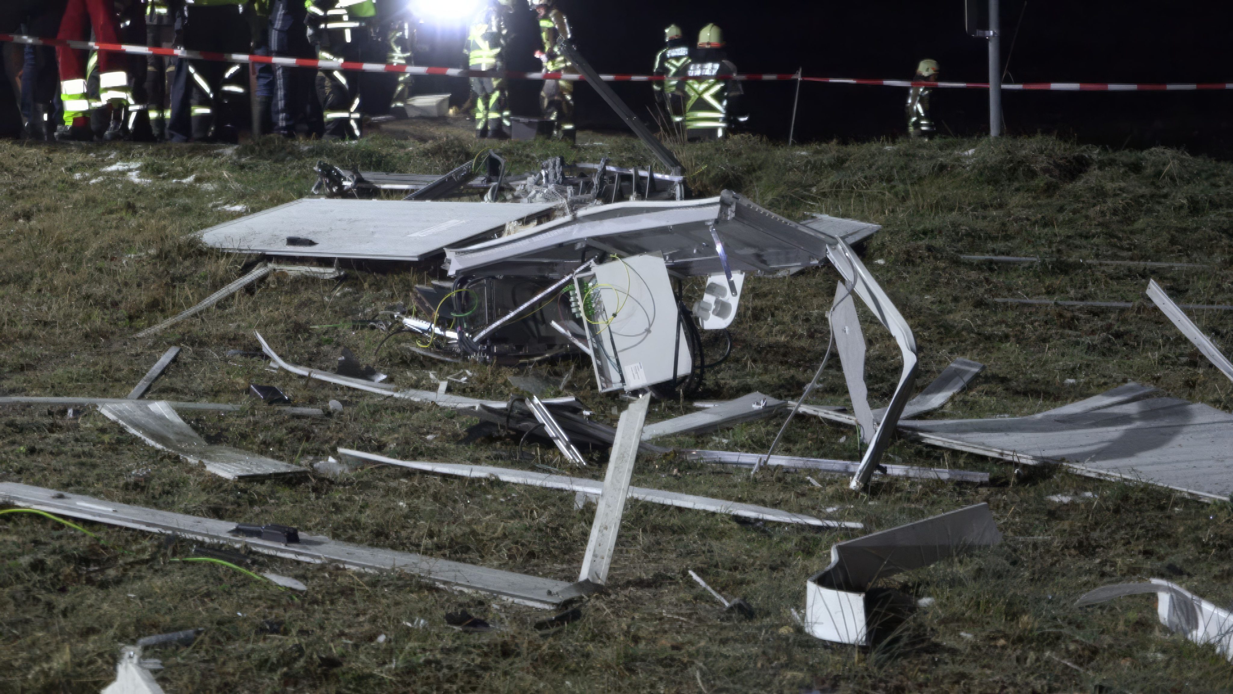 Fahrzeugteile lagen über eine weite Strecke verstreut. Die Schäden deuten auf eine hohe Aufprallgeschwindigkeit hin.