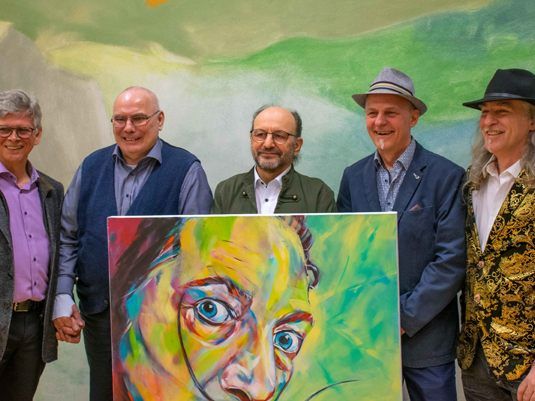 Die Enttabuisierung des Themas ist Kurt Gerszi sehr wichtig. Über Krebs oder Herzleiden wird unverblümt am Stammtisch gesprochen. Über den Schlaganfall wird geschwiegen. Aber auch so ein Schicksal kann Menschen jeden Alters, in jeder Bildungsschicht oder in jeder körperlichen Konstitution treffen, fügt er hinzu. Denn als Betroffener weiß er, wovon er spricht. Verwaltungsdirektor Dr. Franz Freilinger, Primar Jan Di Pauli und Elmar Frick vom LKH Rankweil ermöglichten es, damit diese Ausstellung im Schwerpunktkrankenhaus Rankweil stattfinden kann.