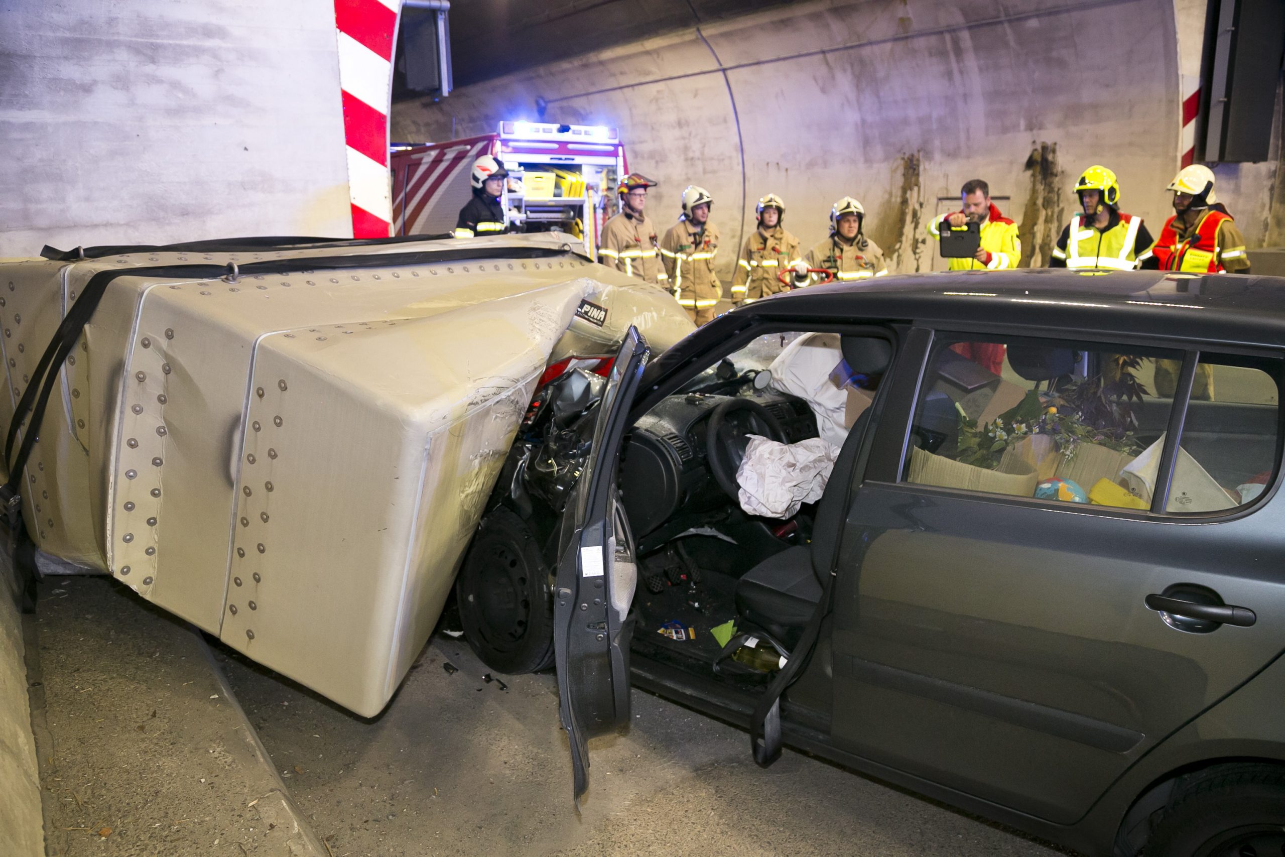 Sekundenschlaf im Ambergtunnel - Pkw kracht frontal in Pannenbucht