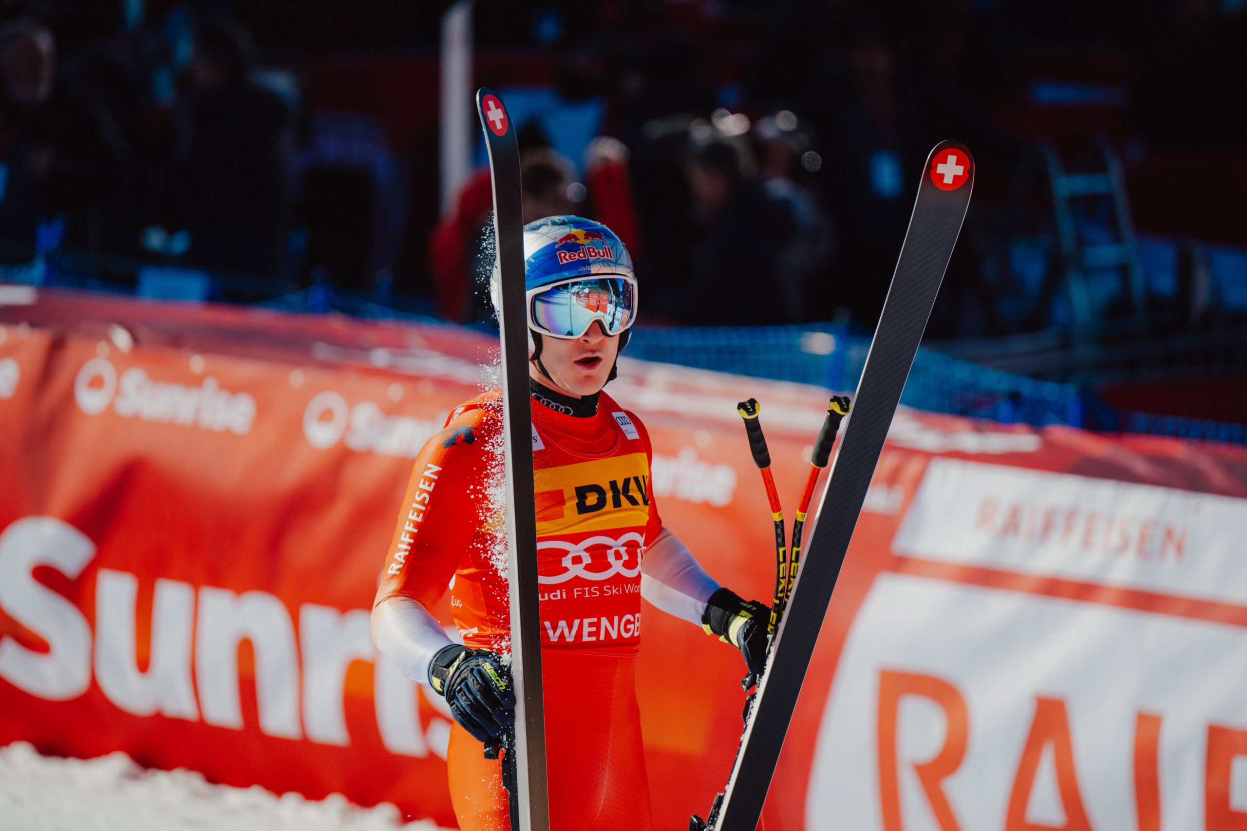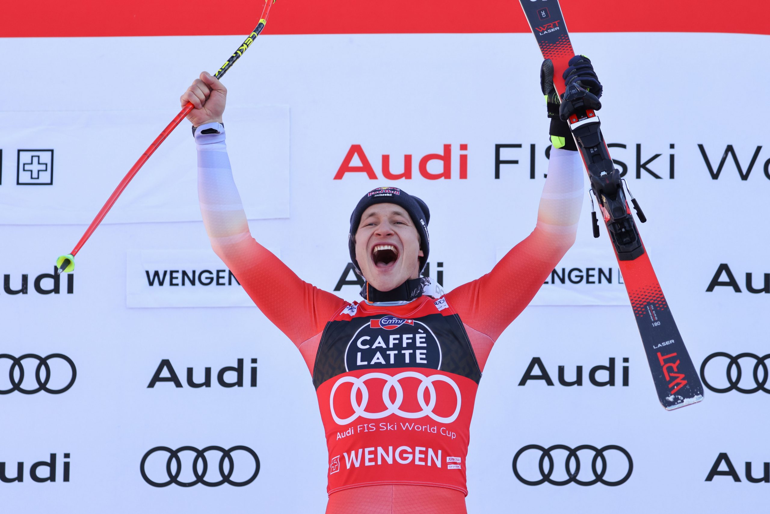 Odermatt stand zu diesem Zeitpunkt schon vor seinem 43. Weltcup-Sieg und dem dritten in Wengen in der Königsdisziplin Abfahrt. Nach seinem enttäuschenden siebenten Platz im Super-G fuhr der 27-Jährige mit dem Messer zwischen den Zähnen. Von Allmen, der Super-G-Sieger vom Freitag, war direkt vor ihm hinuntergefahren und hatte Hrobat zwei Zehntelsekunden abgenommen. Odermatt schaffte es mit einem famosen Lauf, noch einmal 0,37 Sekunden schneller zu sein.