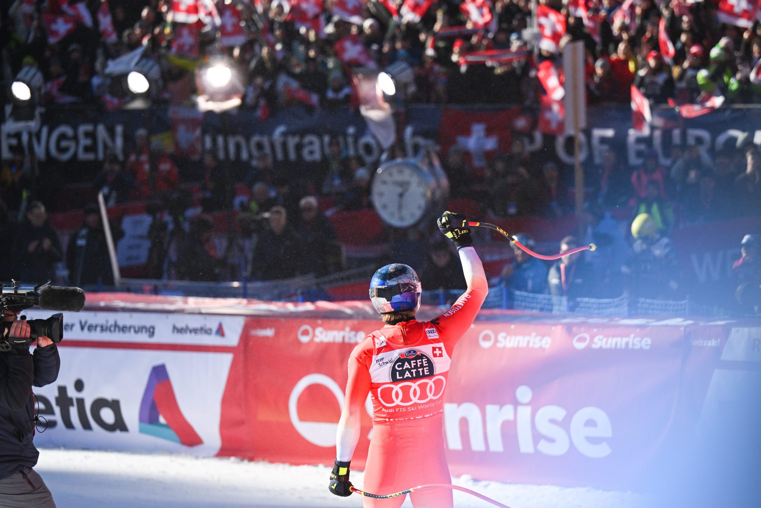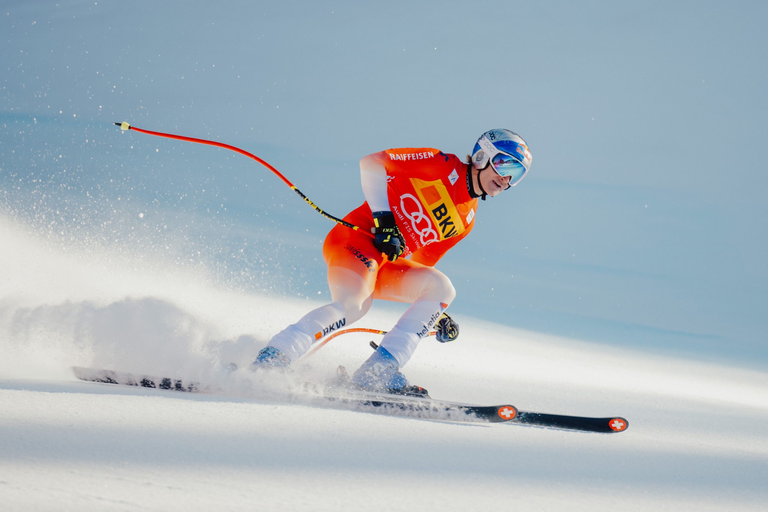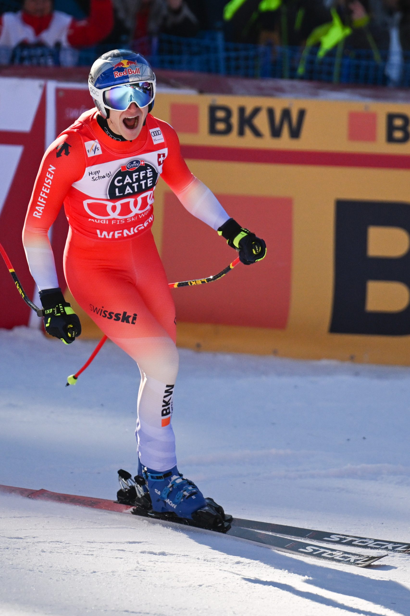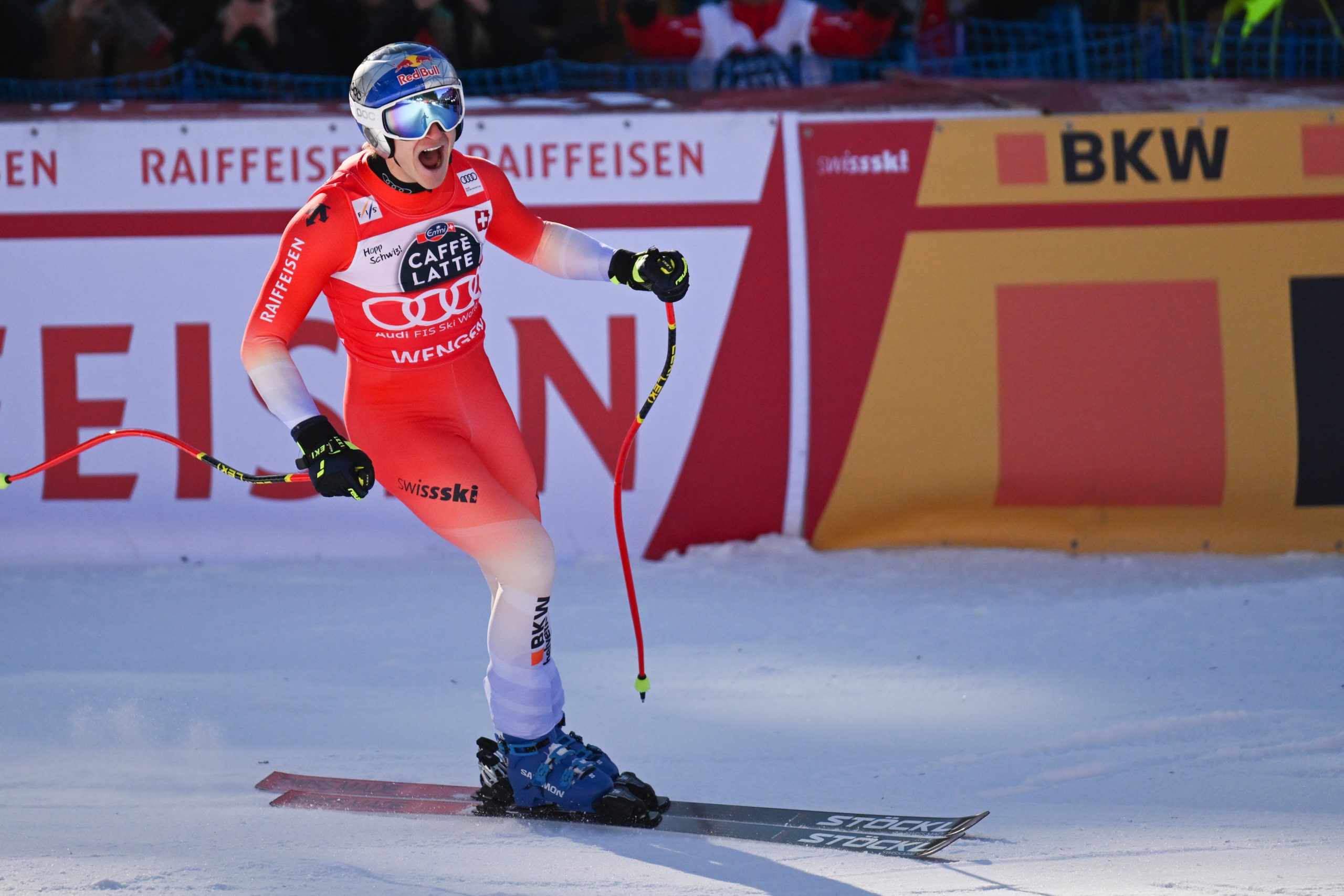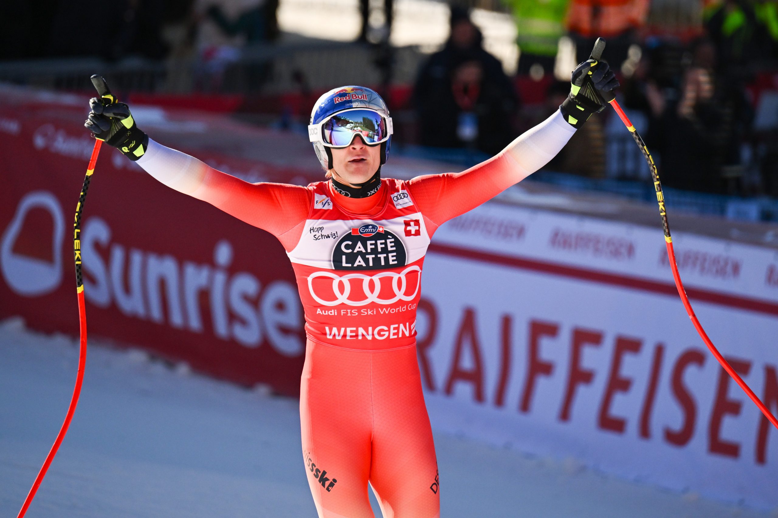 Es wäre bereits der vierte Schweizer Doppelsieg in der vierten Abfahrt der Saison, der Slowene Miha Hrobat war nach Startnummer 30 Dritter. Überschattet wurde das Schweizer Volksfest am Samstag durch einen Sturz von ÖSV-Ass Vincent Kriechmayr, der sich im Ziel-S am rechten Knie verletzt haben dürfte. Eine Diagnose stand noch aus.