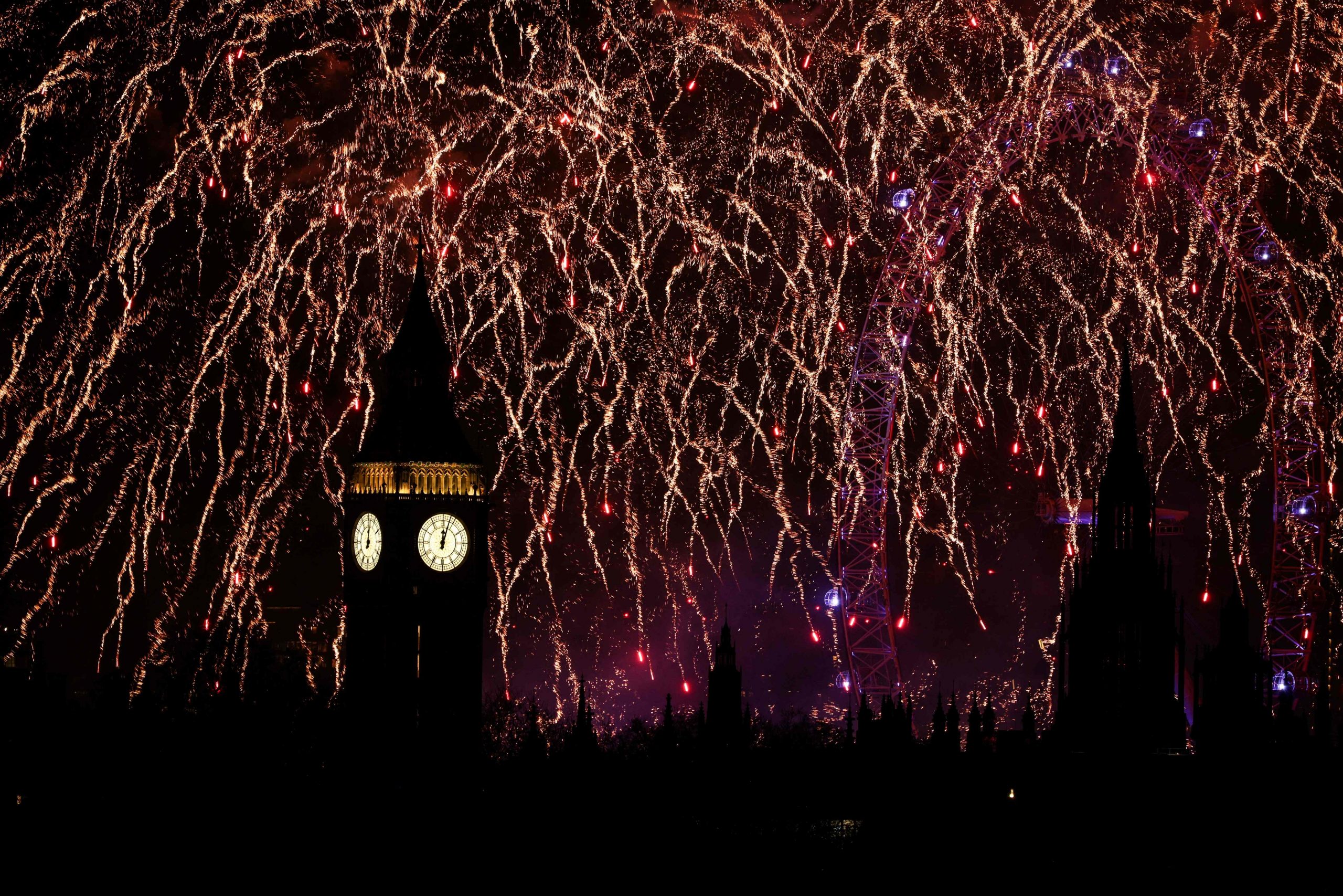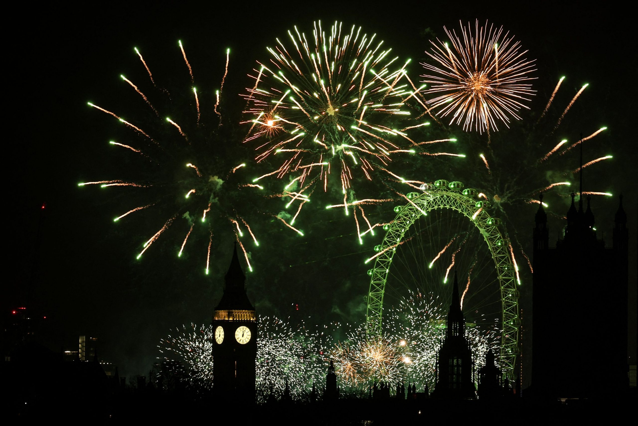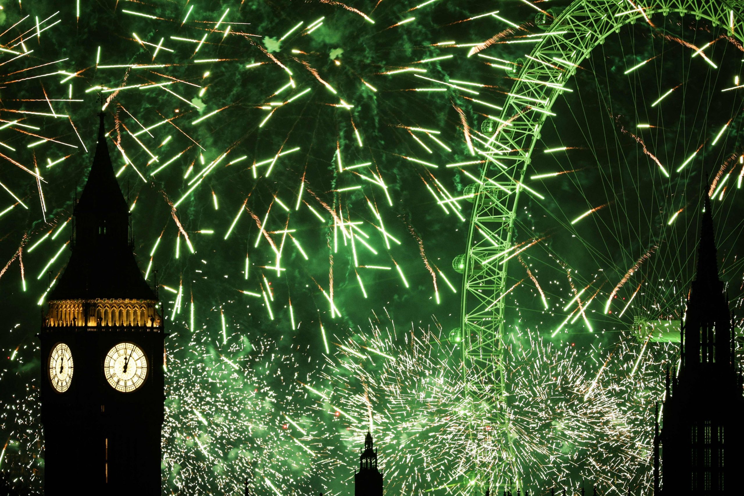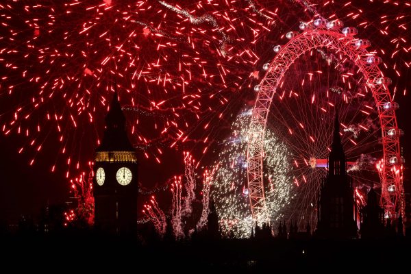 Zum Glockenschlag von Big Ben und mit einem spektakulären Feuerwerk am Riesenrad London Eye feierten rund 100.000 Menschen in der britischen Hauptstadt den Jahreswechsel.