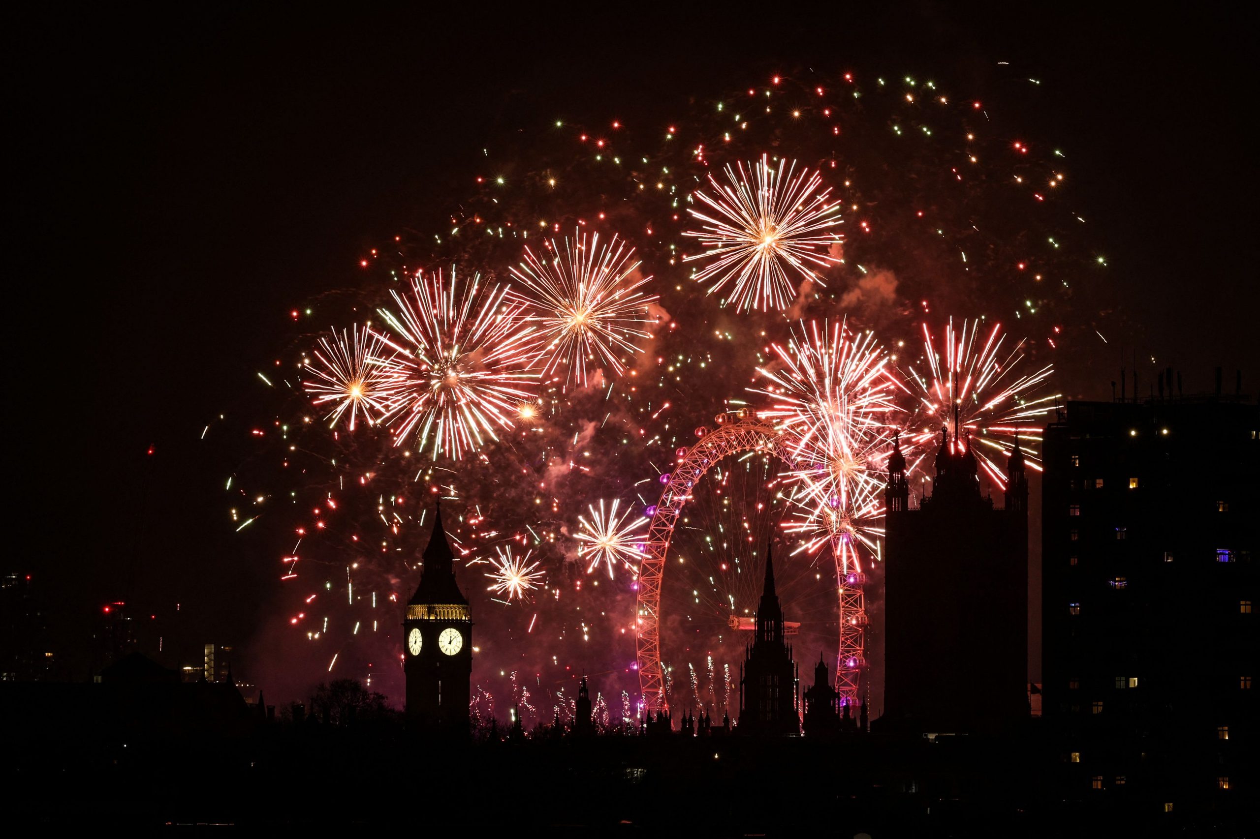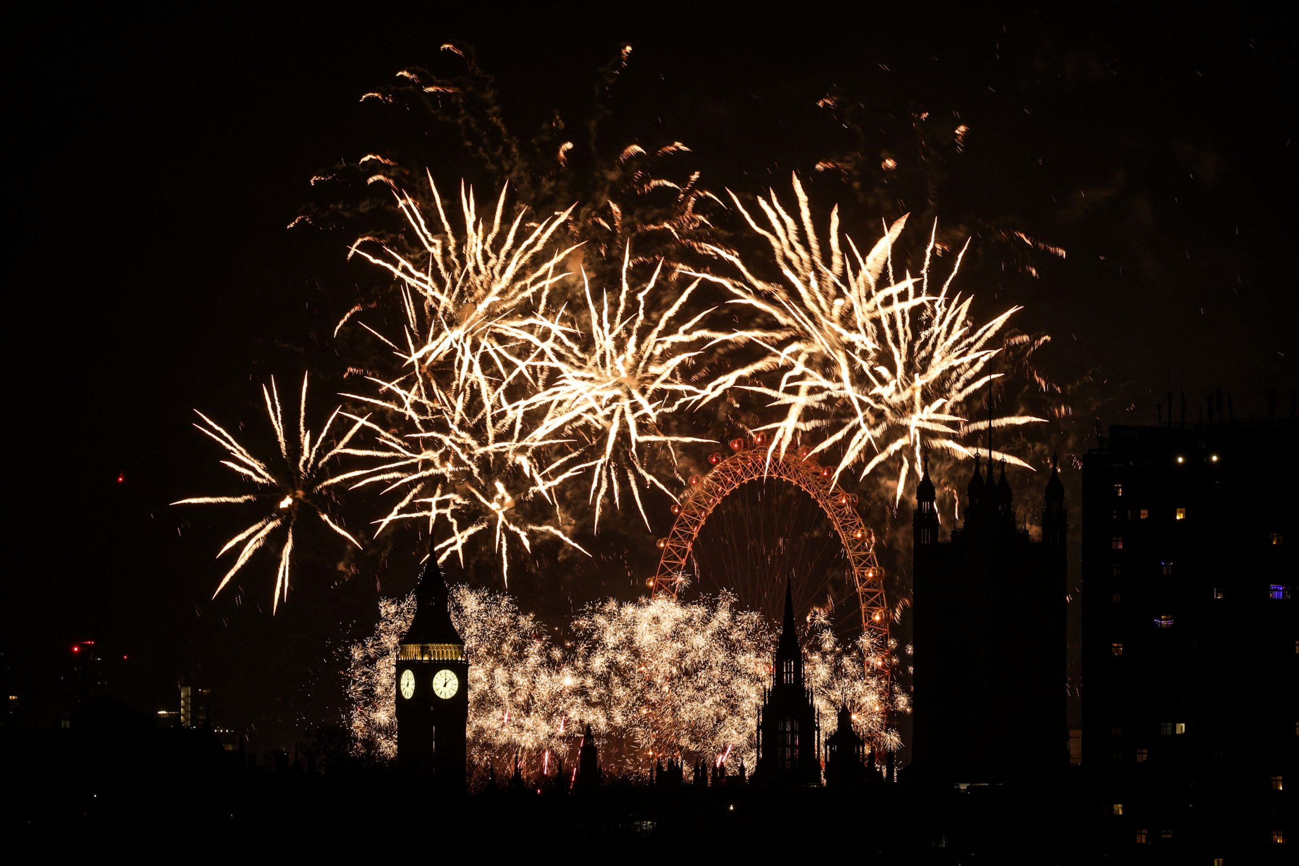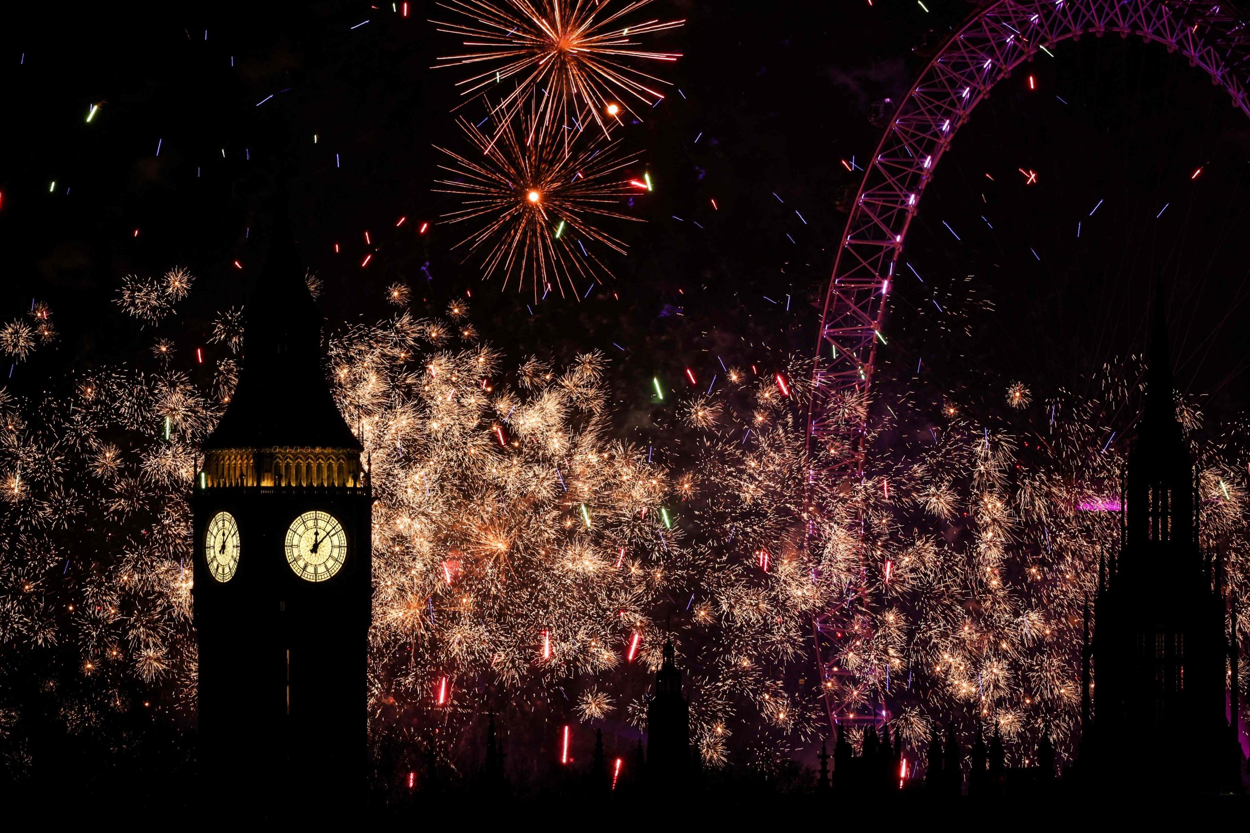 Zum Glockenschlag von Big Ben und mit einem spektakulären Feuerwerk am Riesenrad London Eye feierten rund 100.000 Menschen in der britischen Hauptstadt den Jahreswechsel.