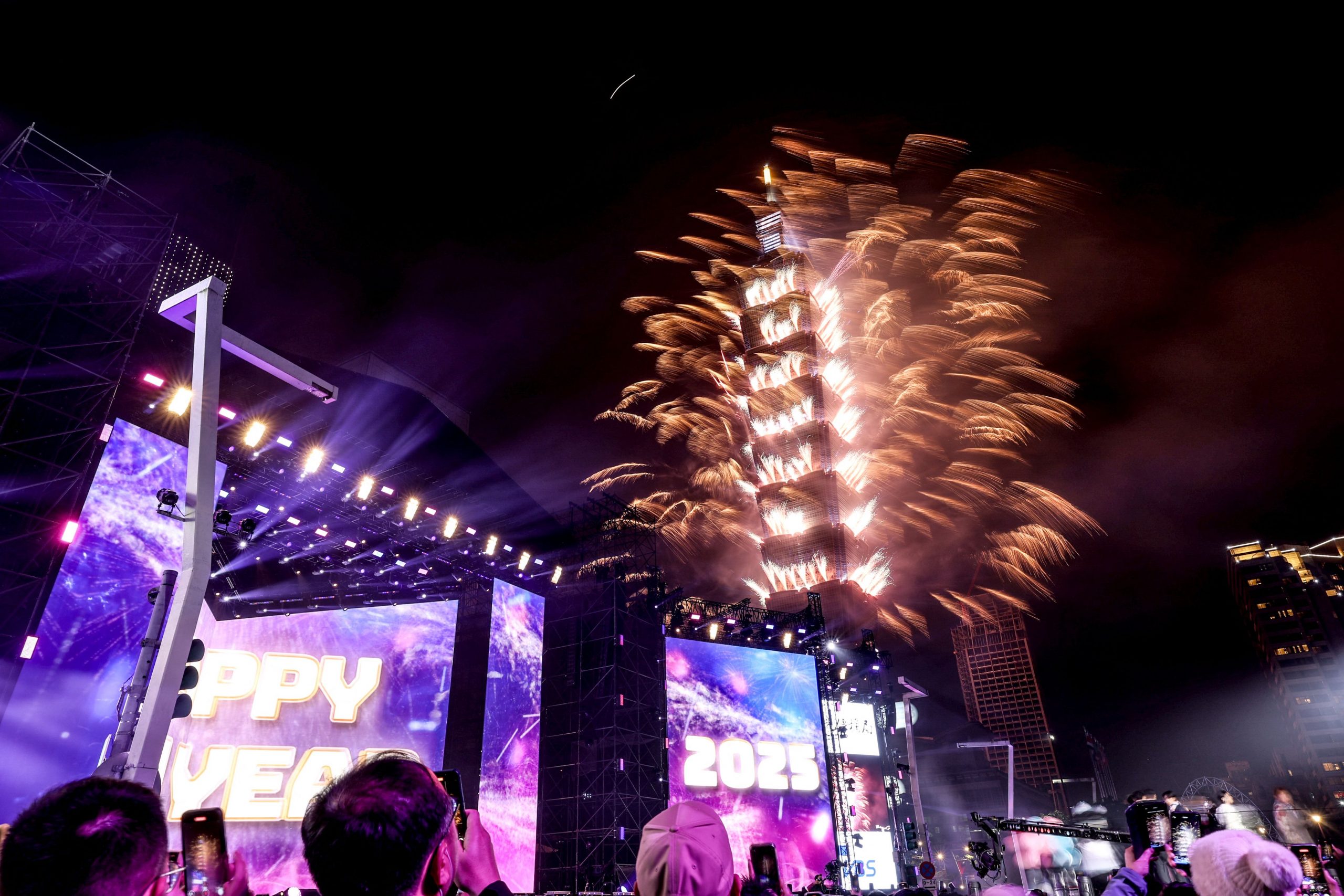 Mit einem großen Feuerwerk feierte auch die ostasiatische Inselrepublik Taiwan ins neue Jahr hinein. In der Hauptstadt Taipeh entzündeten die Organisatoren am berühmten Wolkenkratzer Taipeh 101 ein sechsminütiges Feuerwerk und zeigten unter den Augen Tausender Zuschauer eine Lichtshow.