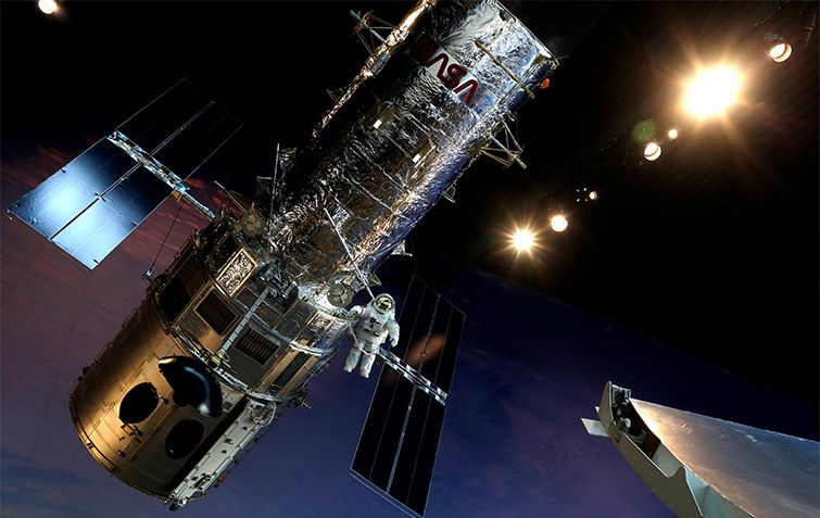 Das Teleskop “Hubble” ist ein gemeinsames Projekt der US-Weltraumbehörde NASA und der europäischen ESA. Es ist ein Observatorium für sichtbares und UV-Licht sowie Infrarotstrahlung, das die Erde in einer Höhe von 575 Kilometern innerhalb von 96 Minuten einmal umrundet. “Hubble” wurde am 24. April 1990 im Zuge der Spaceshuttle-Mission STS-31 ins All geschossen.