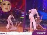 Na gut, ihre Kür war auch ganz schön schwierig: Erst wurde sie von ihrem Tanz-Partner Louis Van Amstel um die Hüfte geschleudert dann sollte sie durch seine Beine rutschen! DAS ging allerdings nicht wirklich gut