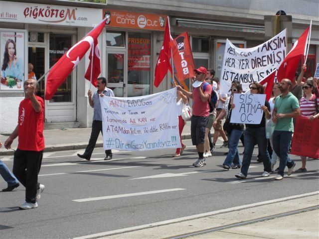 Die Teilnehmer trafen sich vor dem Vereinslokal des “Vereins zur Förderung des Gedankenguts Atatürks in Österreich” in Wien-Favoriten. Gegen 13.00 Uhr setzte sich der Protestmarsch in Richtung Schwarzenbergplatz (Innere Stadt) in Bewegung. Viele der Marschierenden zeigten empört über das Vorgehen der türkischen Sicherheitskräfte gegen die Demonstranten im Istanbuler Gezi-Park. So sagte etwa die 24-jährige Byhan gegenüber der APA: “Die Ereignisse in Istanbul sind katastrophal.”