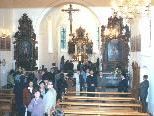 Für echte Volksmusik vom Feinsten garantieren die Musiker der Tiroler Volksmusikgruppe Die G’Fierigen (Claudia Schwarz, Violine Markus Kluibenschädl, Violine, Barbara Schreier, Steirische Harmonika Werner Unterlercher, Kontrabass und Karoline Schöpf, Harfe). Dabei ist nicht nur für beste musikalische Unterhaltung, sondern auch für leibliches Wohl in Form von Speis und Trank gesorgt. Irgendwo auf dem Vorplatz zwischen Kirche, Eibe und Pfarrhaus finden wir auch noch gebührend Platz, unter der allmählich untergehenden hochsommerlichen Abendsonne das Tanzbein zu schwingen