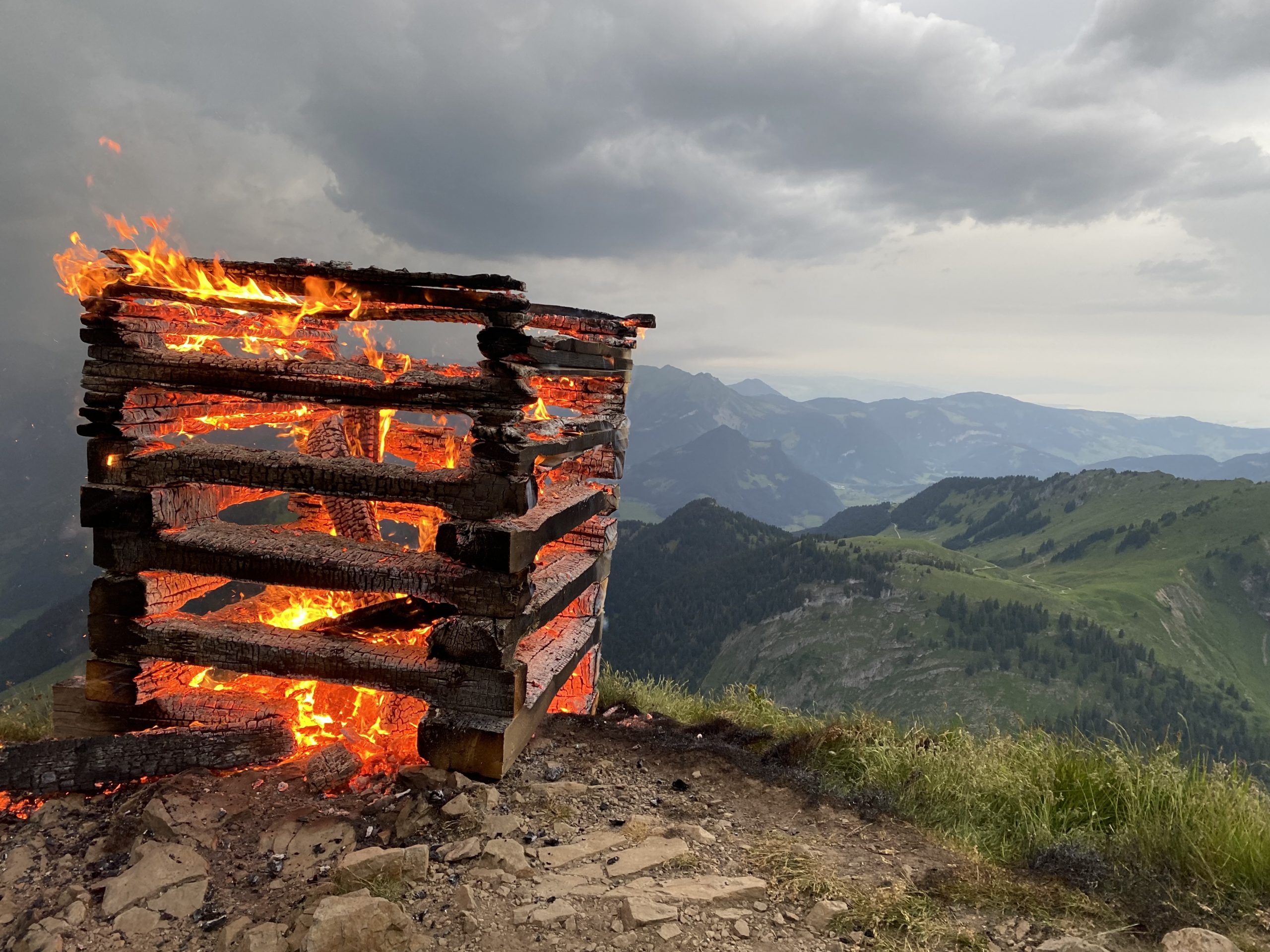 Das wohl bekannteste Sonnenwend-Ritual ist das Entzünden eines großen Feuers. Auf Hügeln, Wiesen oder Berghängen werden Holzstapel entzündet – als Symbol für Licht, Wärme und die Kraft der Sonne.