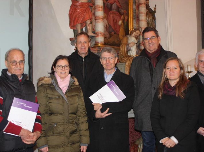 So prall gefüllt mit Menschen war die St. Peters Kirche Rankweil schon jahrelang nicht mehr. Die Marktgemeinde Rankweil präsentierte vor großem Publikum das Sonderband der Reihe Rankweil mit den Themen Kapellen, Fussfälle, Bildstöcke, Flur-, Weg- und Unfallkreuze. Die beiden Autoren Siegfried Bertsch und Peter Steidl sind in der Marktgemeinde Rankweil und dem Ortsteil Brederis in den letzten Monaten auf die Suche nach diesen Kleindenkmälern gegangen. „Es ist das mit Abstand dickste und schwerste Buch der Reihe Rankweil“, sagt Rankweil Gemeinderat Helmut Jenny, der auch als Moderator gekonnt durch die eineinhalbstündige Buchpräsentation führte. 215 Seiten umfasst die dritte Auflage vom Sonderband Reihe Rankweil und kann im Bürgerservice der Marktgemeinde Rankweil käuflich erworben werden. Nach dem „Sternen“ Rankweil und der Fahrbaren Schnapsbrennerei war das dritte Sonderband. In Not, als Zeichen von Dankbarkeit oder Frömmigkeit wurden Kapellen, Bildstöcke und Kreuze von Gläubigen gestiftet, aufgesucht und gepflegt. Hinter diesen denkmalgeschützten Bauwerken stehen oft sagenhafte Geschichten, die zum Erzählen und Entdecken einladen. Es ist in Rankweil schon längst zur Tradition geworden, jedes Jahr wird eine neue Serie zu Wortgeschichten von der Marktgemeinde der Öffentlichkeit präsentiert. Mittlerweile haben Persönlichkeiten aus verschiedensten Bereichen oder namhafte Bürger umfangreiche Themen dokumentiert. 18 Bände der Reihe Rankweil zu Wortgeschichten Sagen, Legenden, Wirtschaft- und Musikgeschichte werden von vielen Aspekten beleuchtet. Sonderbände werden nur dann zum Thema wenn sich das bearbeitende Thema vom Bildmaterial oder vom Umfang her nicht zufriedenstellend in das Format Reihe Rankweil einarbeiten lässt. Daneben gibt es auch noch acht Bände der Dokumente Rankweil. Insgesamt gibt es schon 29 Publikationen zu Rankweiler Geschichten. Die Kleindenkmäler prägen noch heute das Ortsbild einer Gemeinde. „Es ist unsere Aufgabe diese Wahrzeichen zu Erhalten um nicht in Vergessenheit zu geraten. Mit diesem Sonderband werden die Bürger diese Denkmäler wohl anders wahrnehmen. Immerhin sind sie für die Gemeinde von großer Bedeutung“, sagt Rankweil Bürgermeisterin Katharina Wöß-Krall. „Diese kleinen Bauwerke sind wahre Juwelen und Schätze und sind Ausdruck unseres menschlichen Bedürfnis. Sie setzen Zeichen und hinterlassen große Spuren auch in Rankweil. Unvergessene Erinnerungen und Gedanken bleiben in all den Jahren aufrecht“, sprach Rankweil Pfarrer Walter Juen in seiner ausführlichen Rede und Laudatio Klartext. Gesehen wurden bei der Buchpräsentation in der St. Peters Kirche Caritas Seelsorger Wilfried Blum, Seelsorger Elmar Simma, Brederis Pfarrer Nobi Acharuparambil, Ex-Rankweil Vizebürgermeister Franz Abbrederis und Oskar Schwarzmann, Bergrettung Landesleiter Gebhard Barbisch und viele Bürger aus Rankweil. Für die musikalische Umrahmung sorgten der erst elfjährige Raphael Böhler aus Meiningen am Klavier, die Almblösler Bläsergruppe und ein Ensemble mit vier Personen. Nach der Präsentation wurden die Besucher noch zu einem Umtrunk mit Glühmost und Glühwein von der Marktgemeinde Rankweil eingeladen
