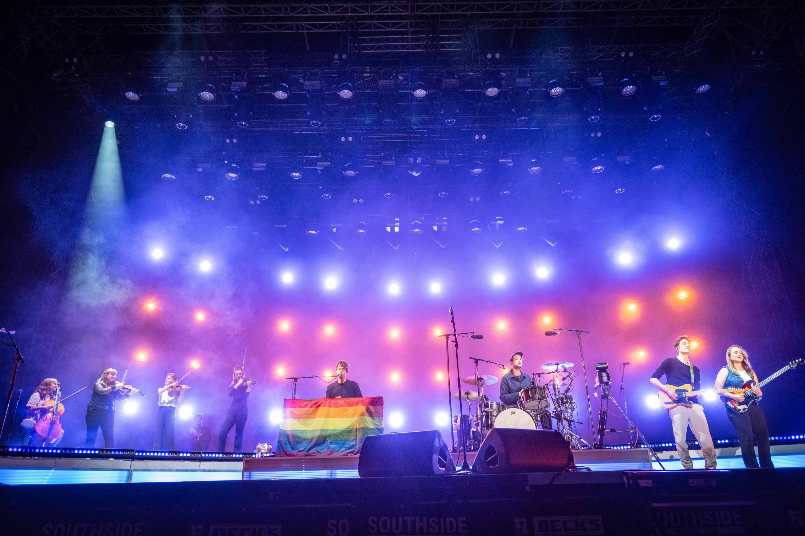 Die ersten Headliner des Abends waren AnnenMayKantereit, die nach einer eineinhalbjährigen Livepause auf dem Zwillingsfestival zum ersten Mal wieder ein Lebenszeichen von sich gaben. Das Gelände war dicht gefüllt, jede Zeile wurde mitgesungen und Henning May strahlte bis über beide Ohren. Wie auch schon beim letzten Southside-Auftritt positionierte sich die Band zwischendurch für drei Songs mitten im Publikum. Mit im Gepäck war dieses Mal allerdings ein ganzes Orchester und zahlreiche Content Creator, die die Band aus dem Fotograben promoteten. Natürlich wurden auch alle Hits zum Besten gegeben und am Ende unter großem Jubel noch eine Tour für 2026 angekündigt.