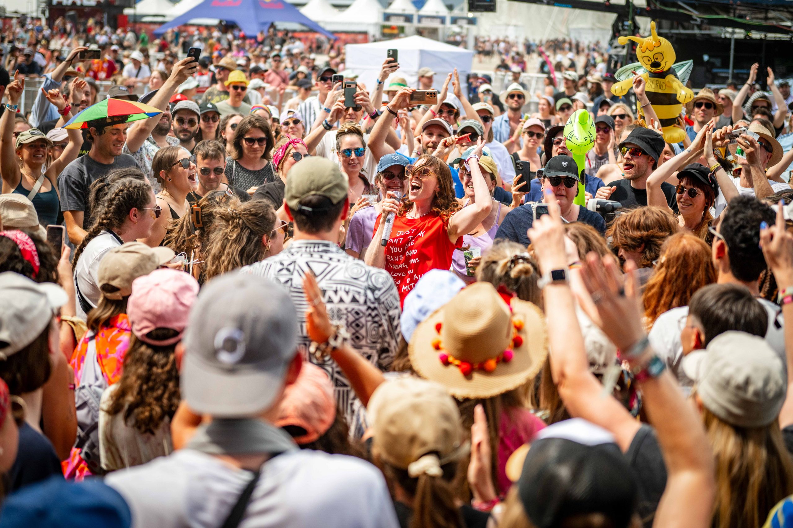 Nicht viel später betrat Kate Nash die Bühne – und tanzte gleich mitten durchs Publikum. Ihre Songs handeln von Selbstbestimmung und vor allem von Feminismus. Dabei bewies die Künstlerin, dass man dafür nicht unbedingt vulgär sein muss wie Ikkimel tags zuvor. Zwar löst Kate Nash damit nicht den selben Hype um ihre Figur aus, brachte aber bereits am frühen Nachmittag viele Menschen zum Tanzen und strahlen.