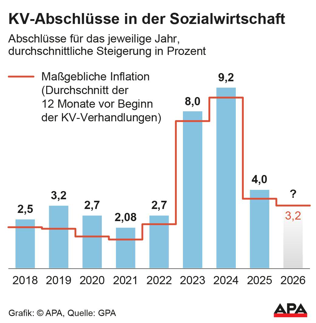 Die Arbeitgeber hätten in 15 Verhandlungsstunden folgendes Angebot für eine Gehaltserhöhung auf zwei Jahre vorgelegt: Mit 1. April 2026 sollen die kollektivvertraglichen Löhne und Gehälter um 2,3 Prozent steigen. Das entspricht einer Erhöhung von 1,72 Prozent für das Gesamtjahr 2026, weil für die ersten drei Monate keine Erhöhung vorgesehen ist. Damit wurde das Angebot für 2026 im Vergleich zur letzten Verhandlungsrunde de facto nicht erhöht. Die IST-Löhne und -Gehälter sollen mit 1. April 2026 um 2 Prozent steigen. Mit 1. Jänner 2027 sollen die kollektivvertraglichen Löhne und Gehälter um 1,7 Prozent, die IST-Löhne und -Gehälter um 1,5 Prozent steigen.