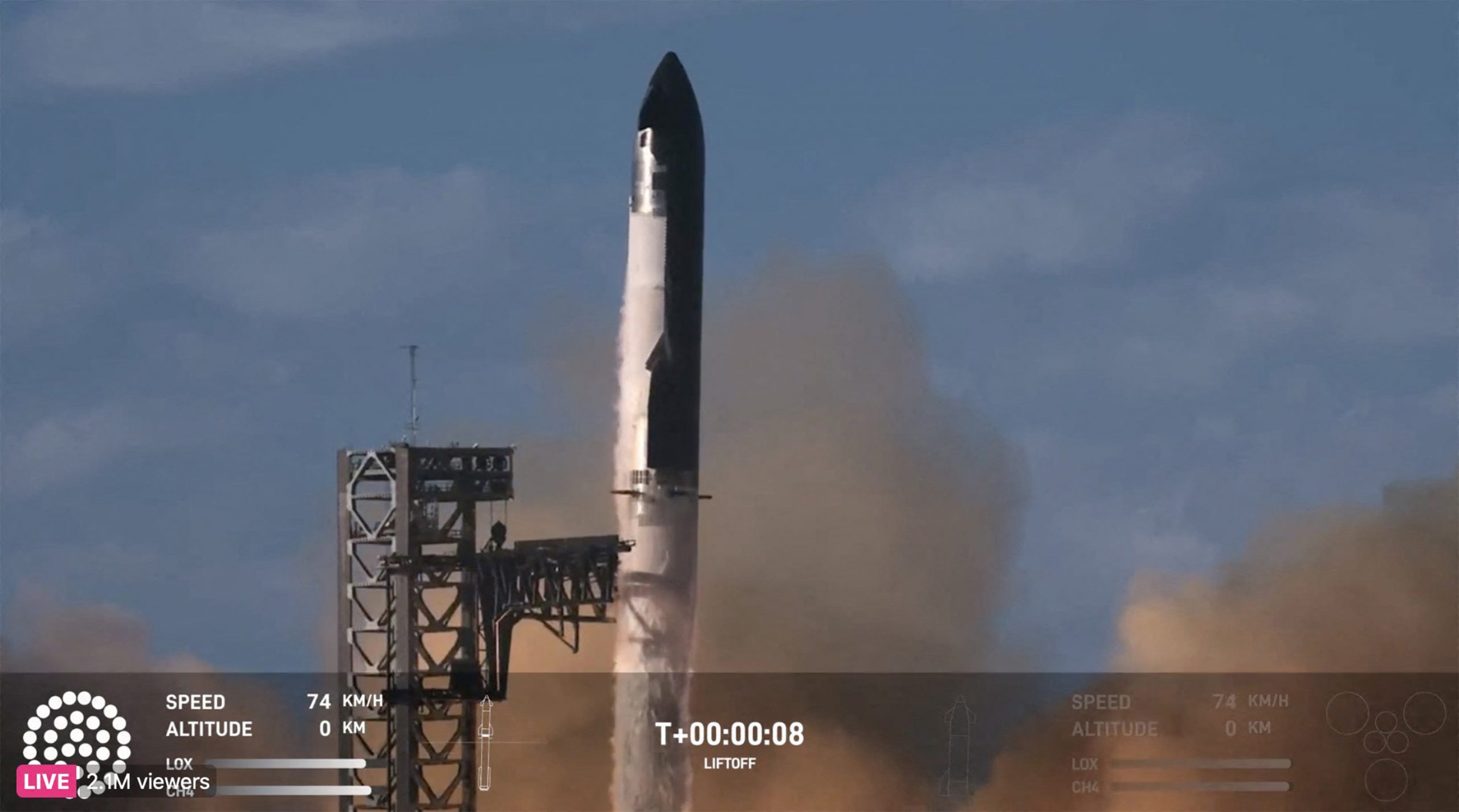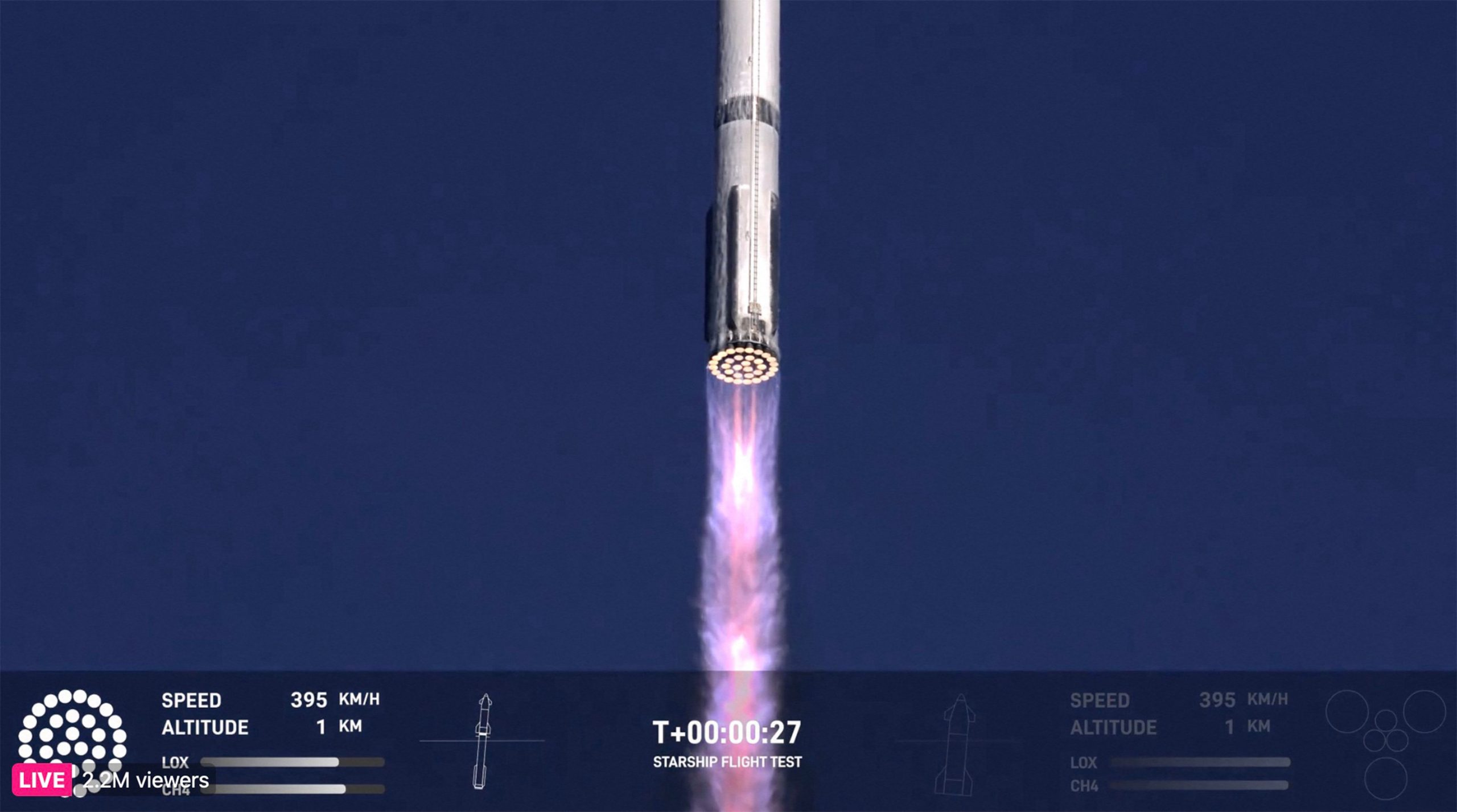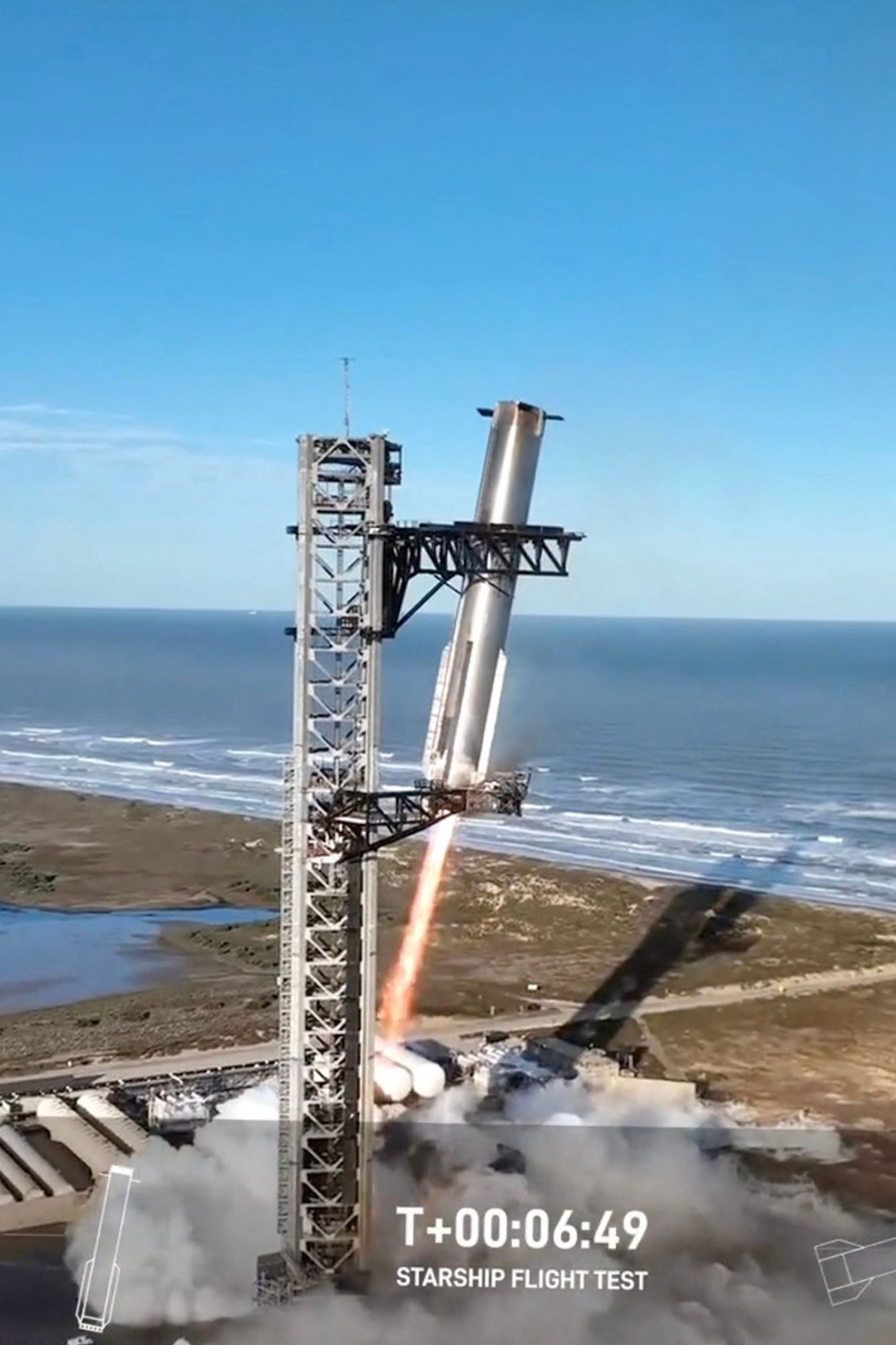 Die Mega-Rakete Starship von Tech-Milliardär Elon Musks Unternehmen war um 16.37 Uhr (Ortszeit, 23.37 Uhr MEZ) zu einem Testflug vom Weltraumbahnhof Starbase im südtexanischen Boca Chica abgehoben. Wie aus der Videoübertragung hervorging, verlangsamte die untere Stufe mit dem Namen Super Heavy etwa sieben Minuten nach Start ihren Flug, dann glitt sie zurück zur Abschussrampe und wurde von mechanischen Armen am Startturm aufgefangen. Das Wiederauffangen war SpaceX bisher nur einmal, beim Testflug im Oktober, gelungen und sorgte für Applaus und Jubel beim Team am Boden.