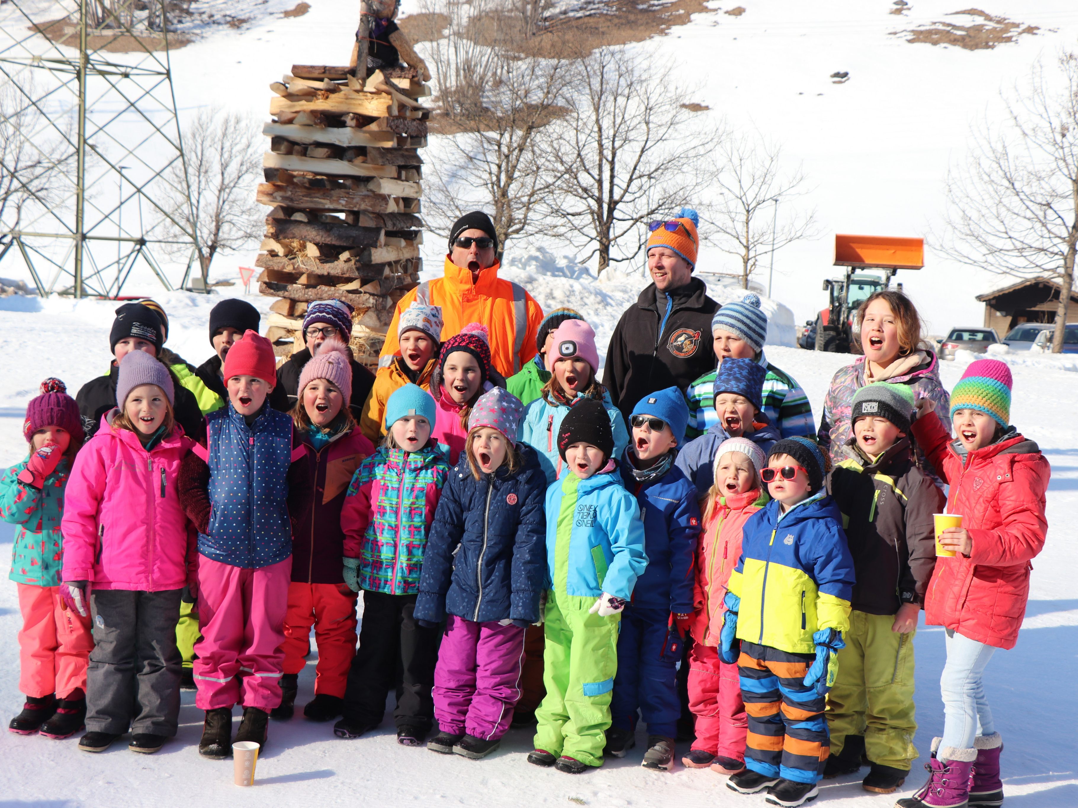 Holzscheit für Holzscheit wurde unter den Anweisungen des ehemaligen, langjährigen Funkenmeisters Leni Salzgeber und unter Mithilfe von Christian Drissner der Kinderfunken errichtet. Damit dieser auch perfekt wurde, benötigte es natürlich eine Funkenhexe. Diese wurde gemeinsam mit den Zunftmitgliedern Martina Tuttner und Anna Ladstätter mit viel guter Laune hergestellt. Zuvor durfte jedes Kind sogar noch seine eigene Fackel bauen. Nach diesen anstrengenden Arbeiten hatten sich die Kinder eine kleine Pause verdient. Bei Würstchen und wärmenden Tee konnten sie sich sodann im Zunfthüsle stärken.