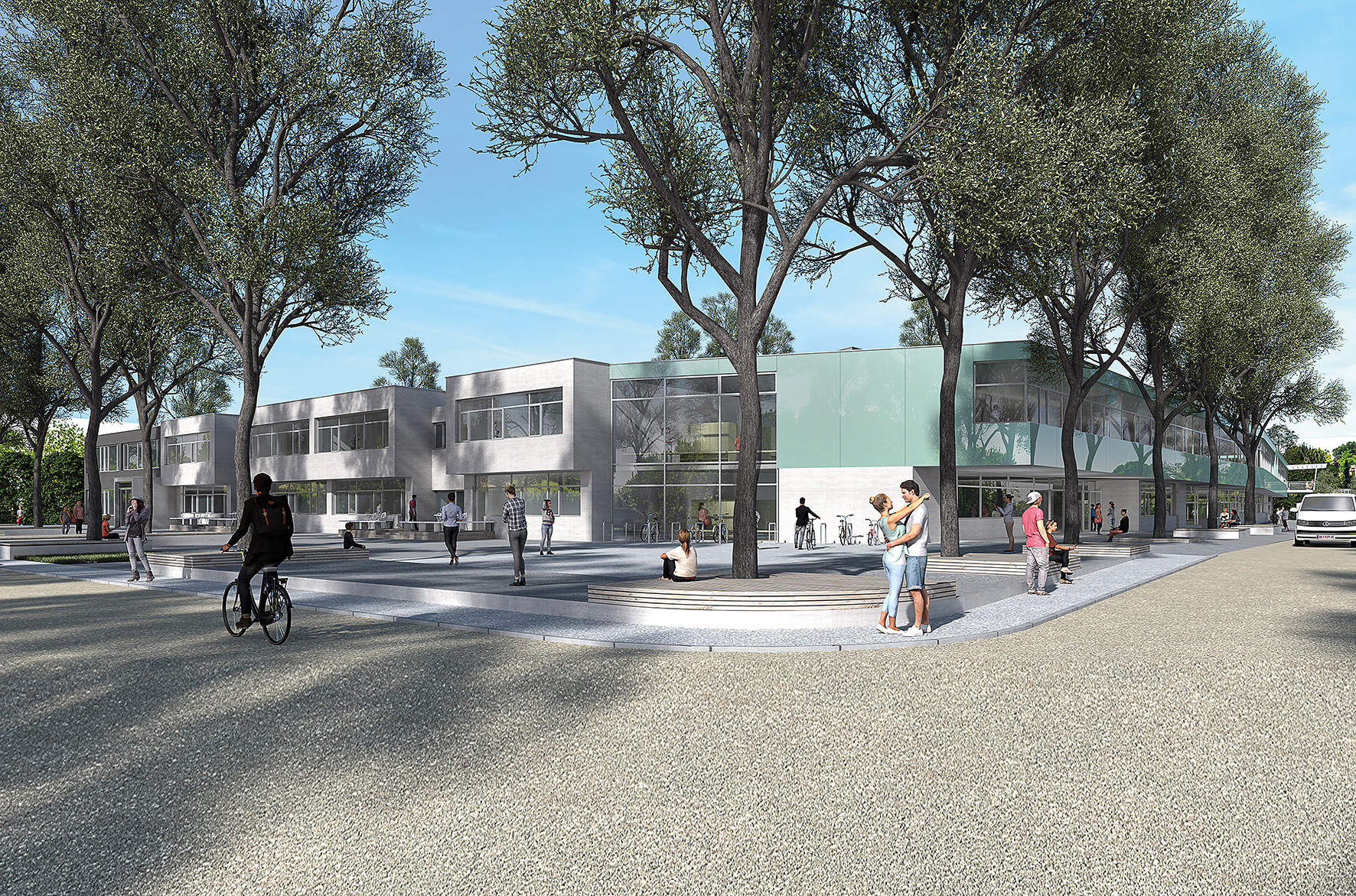 Lustenau. Der zukunftsweisende Campus umfasst eine Clusterschule aus Volksschule und SPZ mit Ganztagsbetreuung, einen Kindergarten, eine Doppelturnhalle, Elternberatung und eine innovative Produktionsküche für regionales, gesundes Essen in Lustenaus Kindergärten und Schulen. Eine Begegnungszone sowie eine neue Fuß- und Radwegverbindung bringen mehr Sicherheit im Quartier. Ein Generationenpark wird Schule und Kindergarten mit dem benachbarten, geplanten Betreuten Wohnen der VOGEWOSI verbinden.