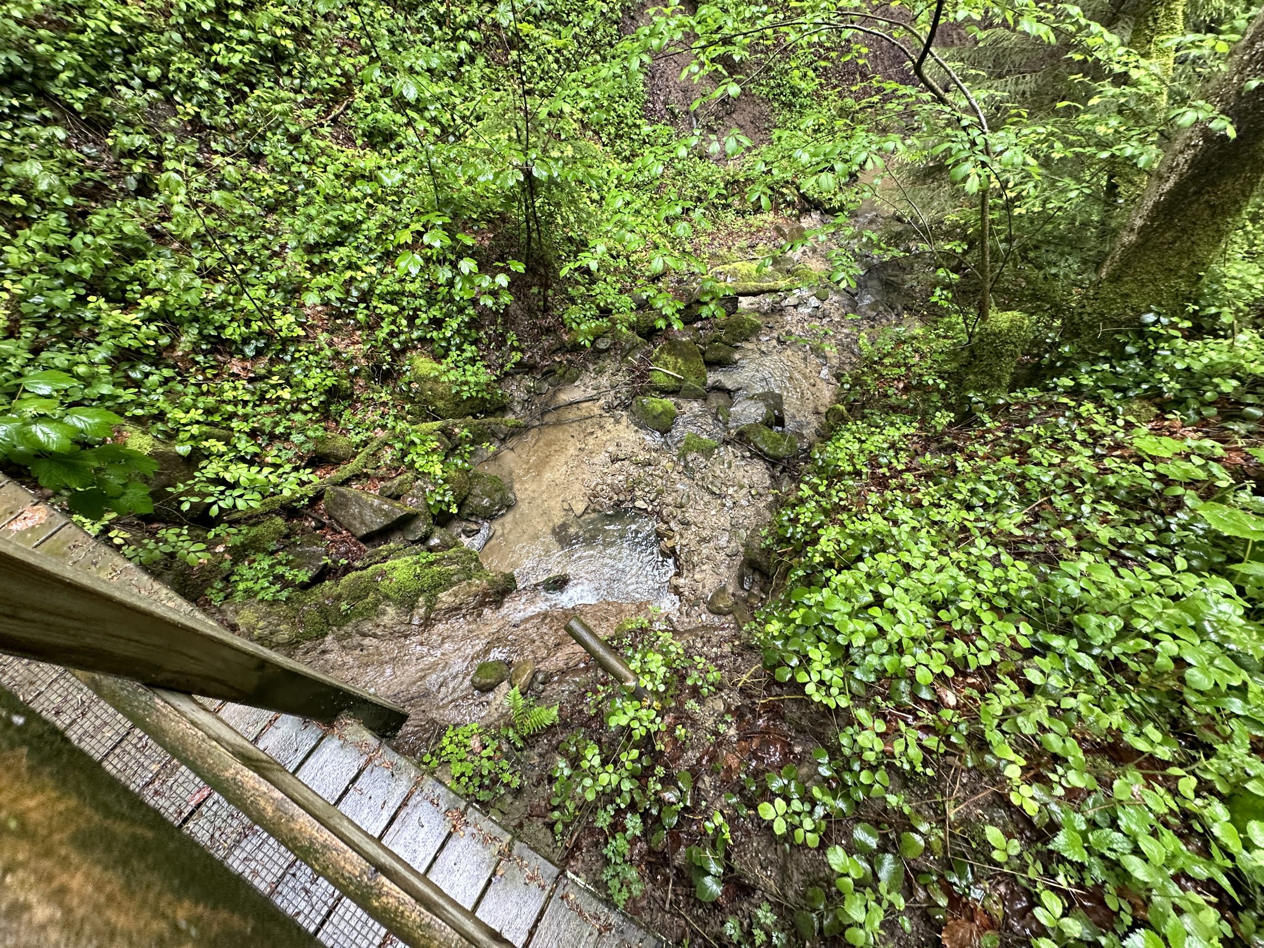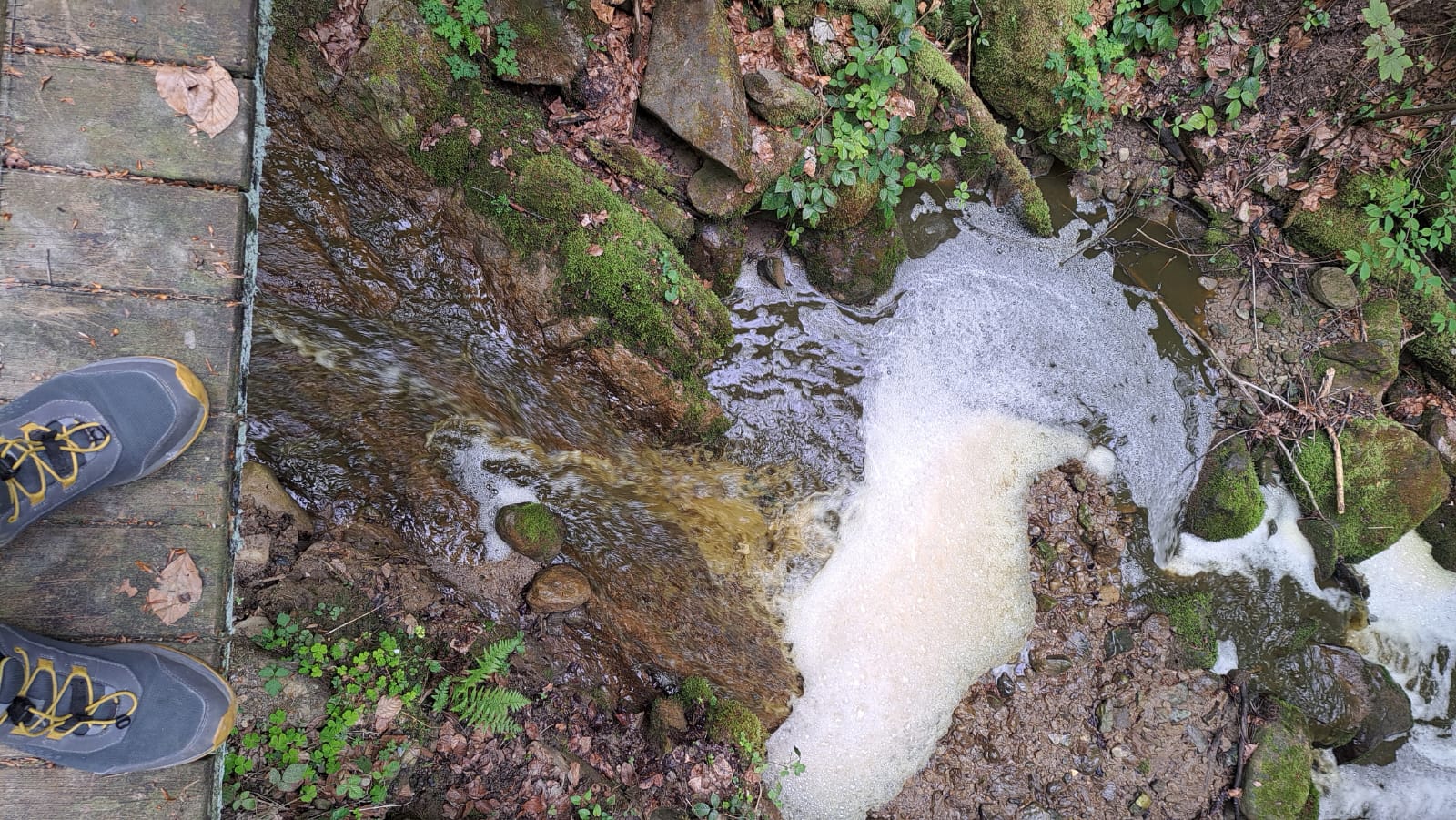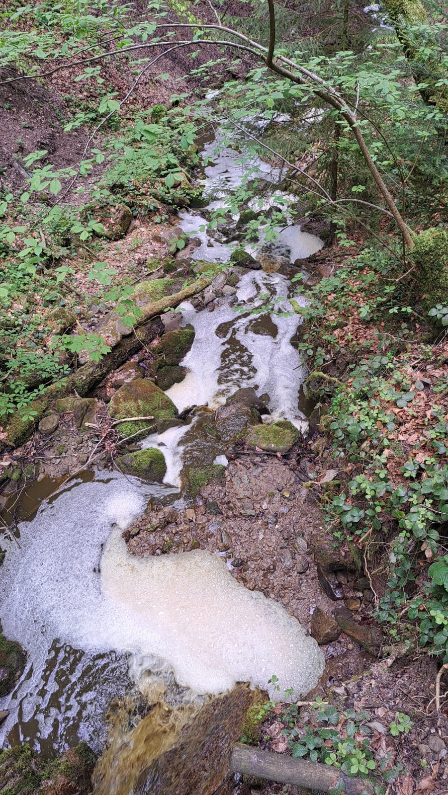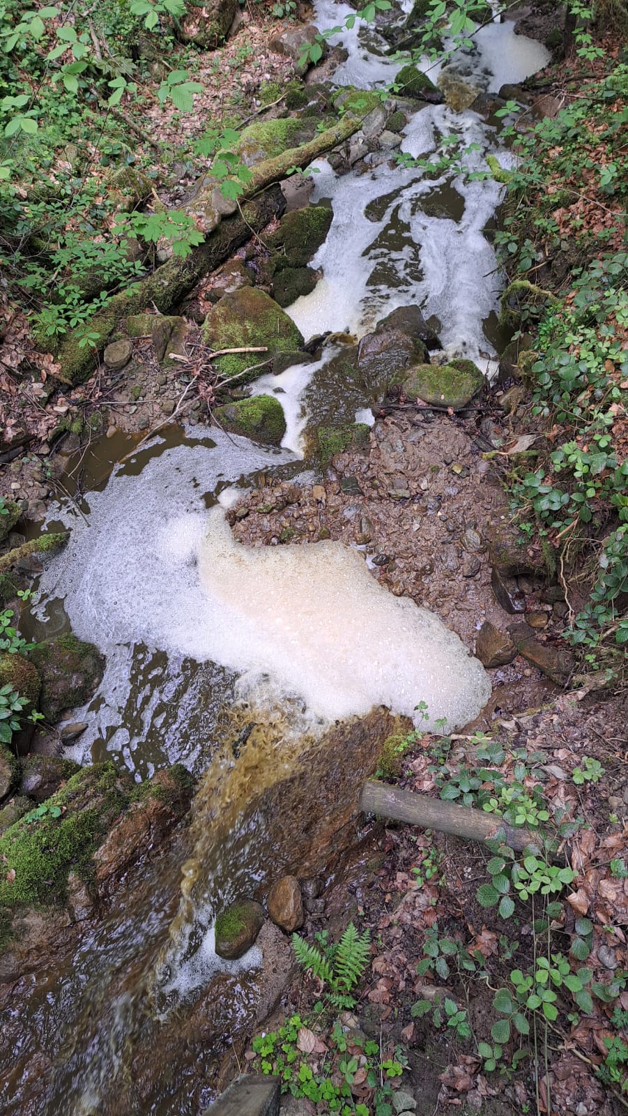 Auf Höhe der kleinen Brücke stießen die beiden Männer auf eine unliebsame Überraschung: Der Bach im Wäschtobel war bräunlich gefärbt, schäumte und roch stark nach Gülle.