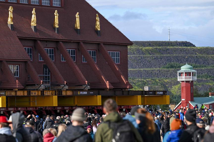 Tausende Schaulustige sahen dem Spektakel am Morgen zu, wie die Nachrichtenagentur TT berichtete. In einer Live-Übertragung des Fernsehsenders SVT war zu sehen, wie das 672 Tonnen schwere Gotteshaus auf einem speziell konstruierten Wagen durch Kiruna rollt.