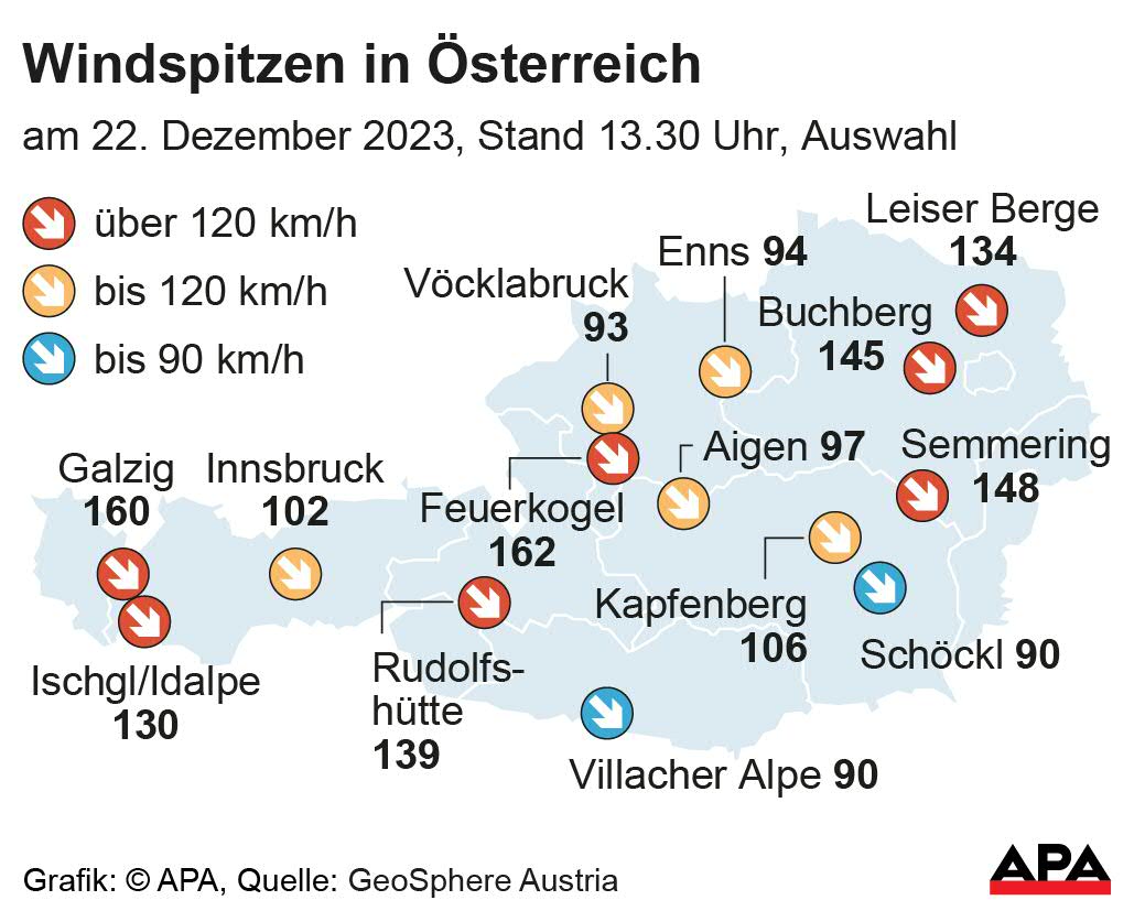 Spitzenwerte von 162,6 km/h: So schlimm wütete der Sturm im Rest von Österreich