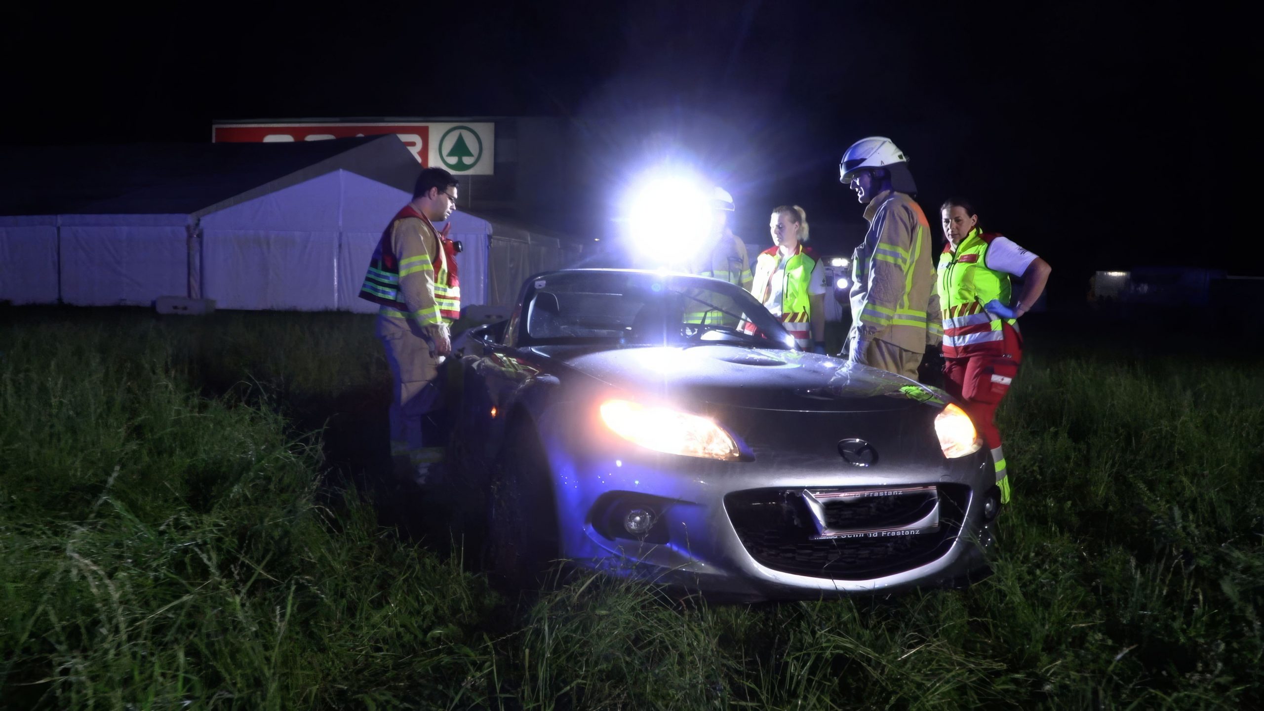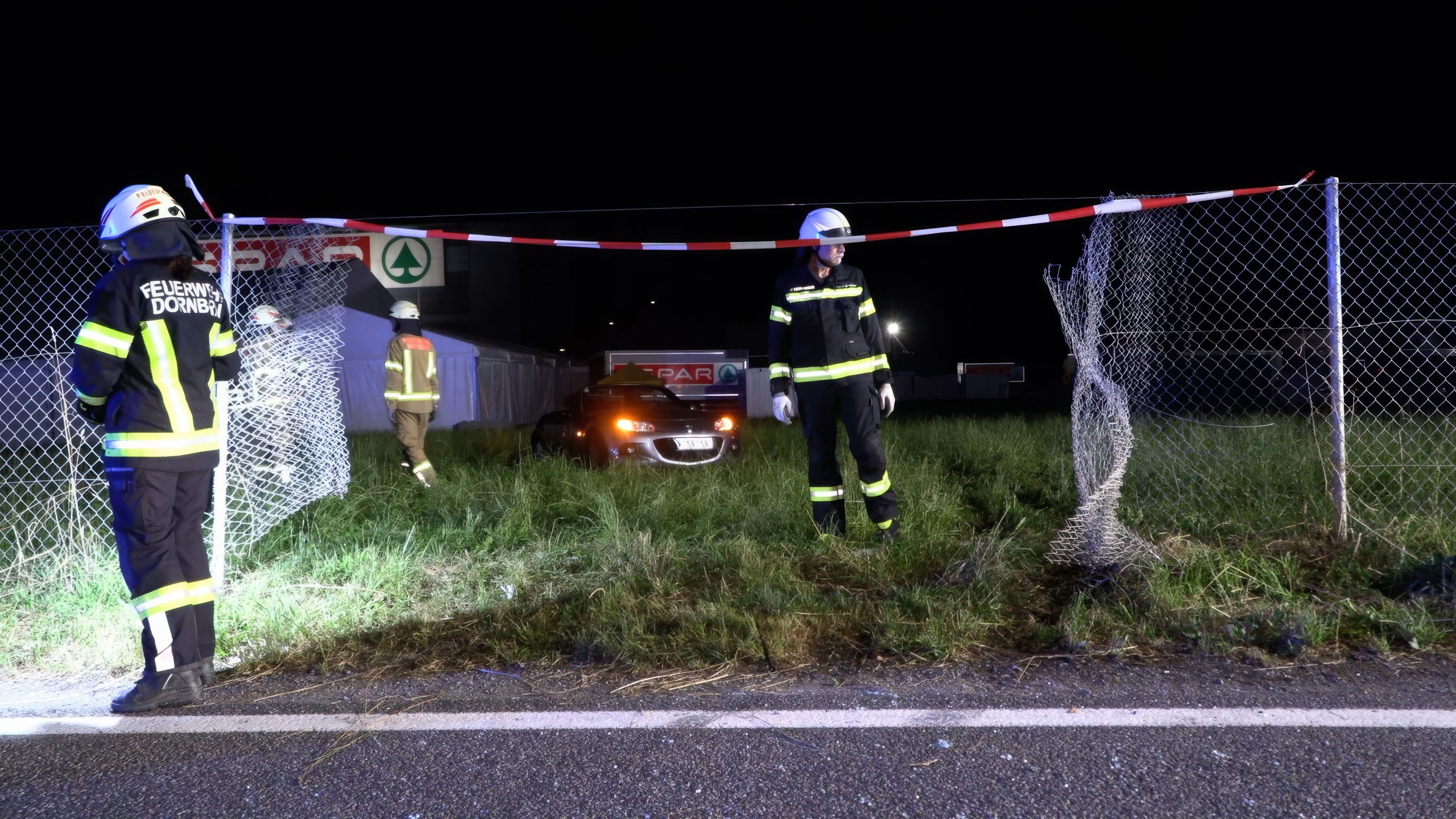 Am Samstag gegen 2:45 Uhr verlor der Lenker eines silbernen Mazda-Roadsters auf der L45a Bleichestraße – in unmittelbarer Nähe zur Spar-Zentrale – die Kontrolle über sein Fahrzeug. Das Cabrio kam von der Fahrbahn ab, durchbrach einen Drahtzaun und blieb schwerbeschädigt in einer Wiese stehen. Zwei Personen wurden verletzt und mussten ins Landeskrankenhaus Dornbirn gebracht werden.