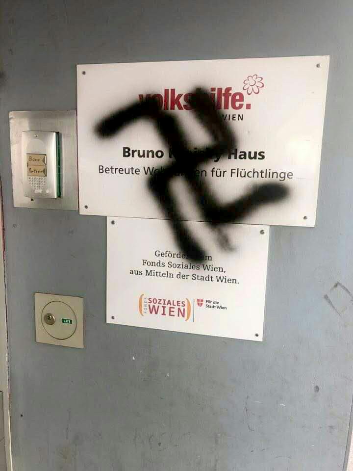 Laut Volkshilfe fand die Spray-Attacke in der vergangenen Nacht statt. Man habe die Symbole inzwischen wieder entfernt, teilte man auf APA-Anfrage mit.