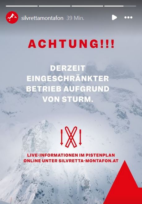 Silvretta Montafon Beim Skigebiet Silvretta Montafon ist derzeit nur ein eingeschränkter Betrieb möglich. Über den aktuellen Betriebsstatus informiert die Website unter https://www.silvretta-montafon.at/de/winter/pisten