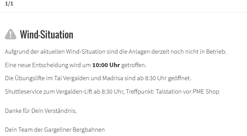 Gargellener Bahn geschlossen: Auch in Gargellen sind die Anlagen aktuell (noch) nicht in Betrieb. Nur die Übungslifte im Tal sind geöffnet. Nähere Infos gibt's unter https://www.montafon.at/