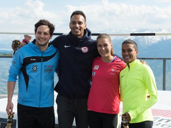 Viele Funktionäre vom 43. Hypo Mehrkampfmeeting wie OK-Chef Christoph Kathan, Pressechefin Renate Öhe und Sponsorenvertreter haben beim Jump &View Event am Hohen Kasten in der Schweiz vier Topstars der Leichtathletikszene auf die Beine geschaut. In luftiger Höhe haben besonders Alysbeth Felix Boyer, Dominique Good, Jeremy Taiwoo und Kevin Öeler eine gute Figur gemacht und im Hochsprung für Aufsehen gesorgt.