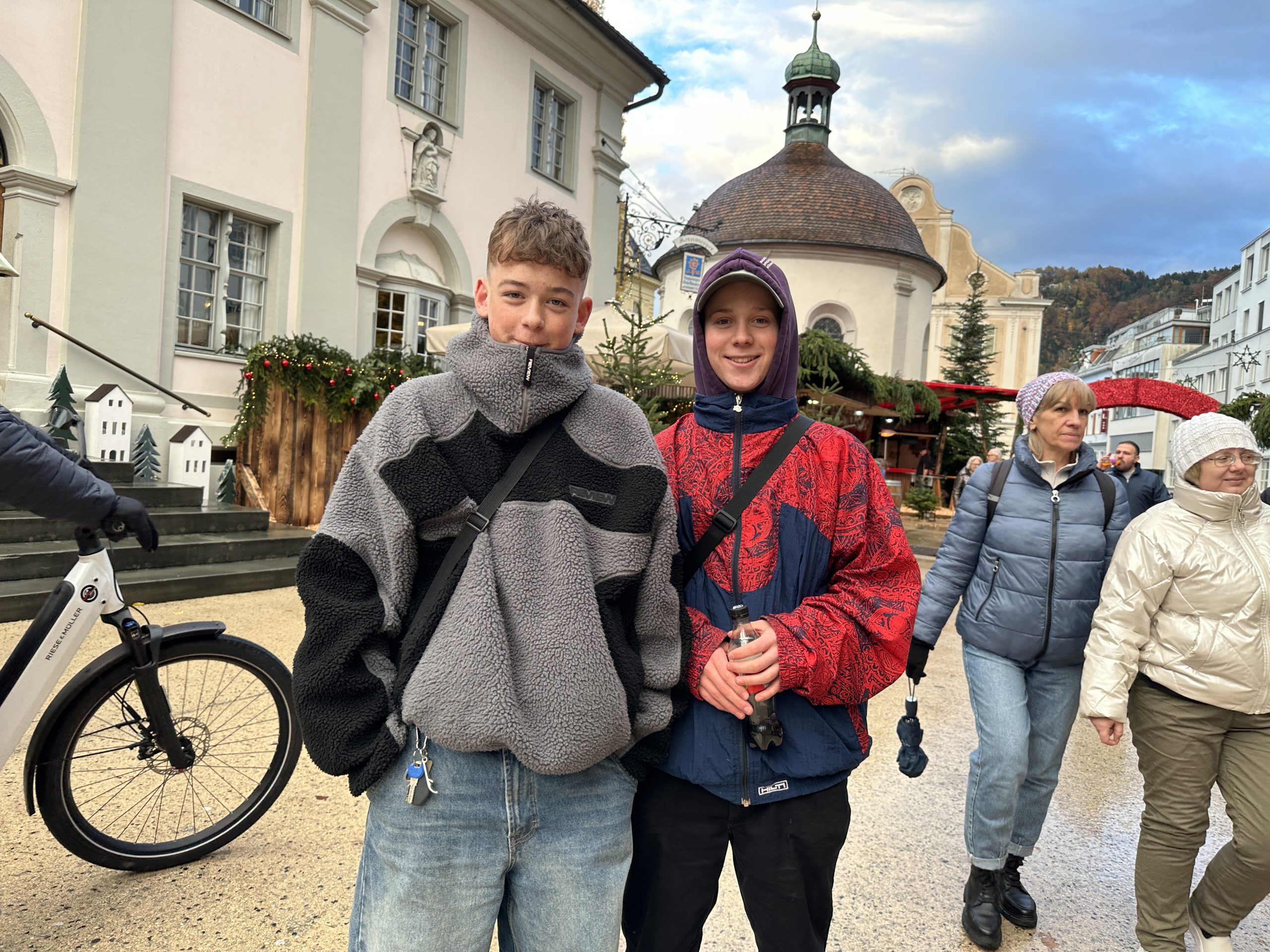 Leo (16) aus Klaus und sein Kumpel Philip (16) aus Nofels pilgerten extra für den Weihnachtsmarkt nach Bregenz. Sie freuen sich besonders auf den ein oder anderen Glühmost und leckeres Essen. "Solche Schokobananen" werde er sich holen, erklärt Philip gegenüber VOL.AT. "Das ist das Beste." Man müsse schon gleich auf den Weihnachtsmarkt gehen, meint der Nofler. Auch das Wetter passe. Es habe zwar geregnet, doch jetzt werde es klarer. "Der Schnee fehlt noch, aber sonst ist alles gut", meint auch Leo. Auf dem Markt sei auch die Stimmung schon da, sind sich die beiden Jugendlichen einig. Spätestens, wenn man Geschenke kaufe, komme dann die restliche Weihnachtsstimmung auf.