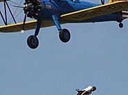 Der Stuntman sollte während einer Flugshow auf der “Selfridge Air National Guard Base” in Harrison Township am Samstag von einem Flugzeug in einen darüberfliegenden Helikopter umsteigen. Zwei Versuche misslangen, der dritte schließlich endete tragisch: Vor tausenden geschockten Zuschauern verlor der erfahrene Stunt-Profi den Halt und stürzte rund 60 Meter in die Tiefe.
