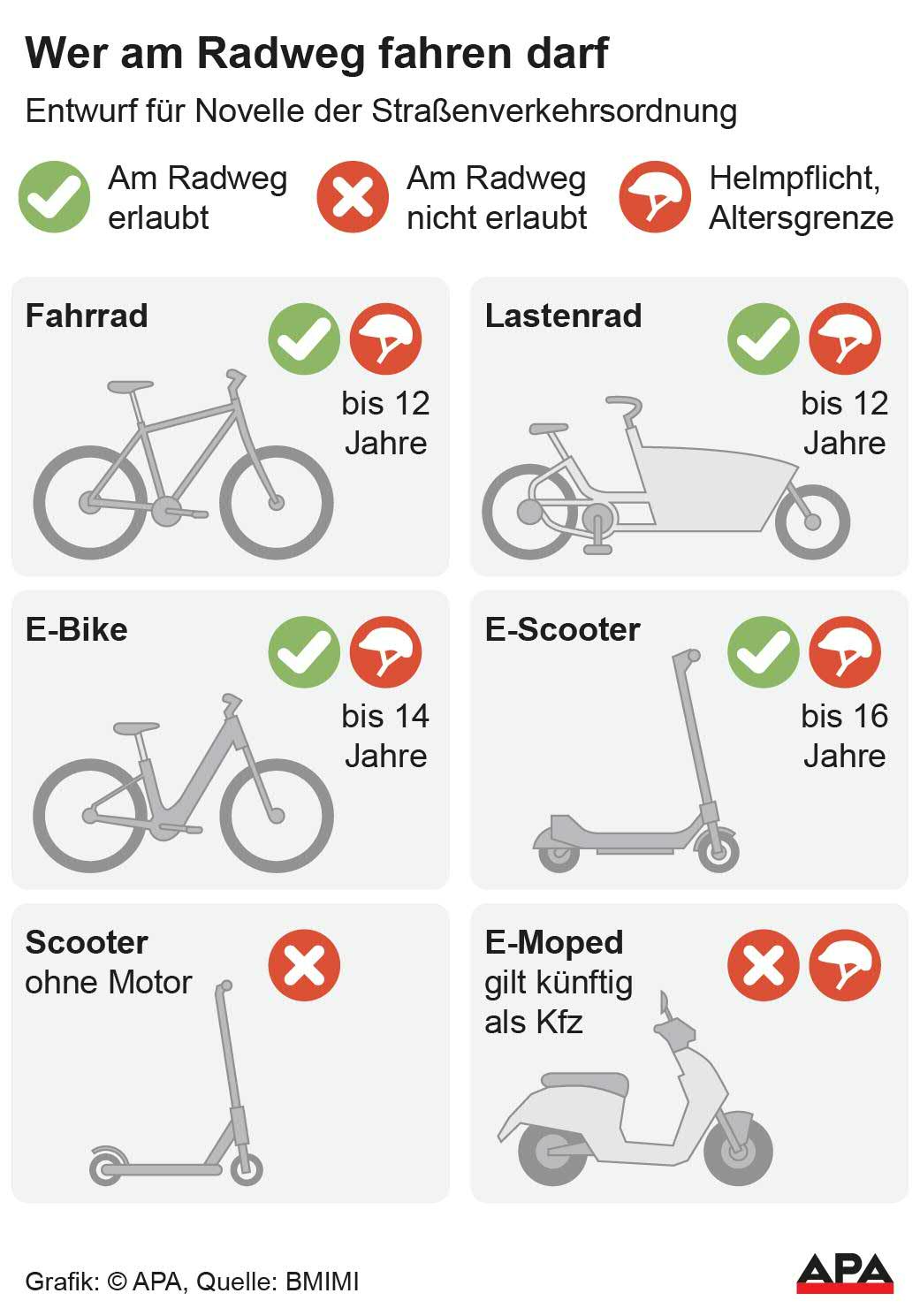 Wien hat auch in Sachen E-Moped Druck gemacht. Entsprechend froh ist man über die geplante Verbannung von den Radwegen. "Dass hier immer schnellere, vollmotorisierte Elektrofahrzeuge unterwegs sind, ist nicht akzeptabel", befand Sima. Mit bis zu 80 Kilo Leergewicht seien sie extrem schwer und ein Sicherheitsrisiko.