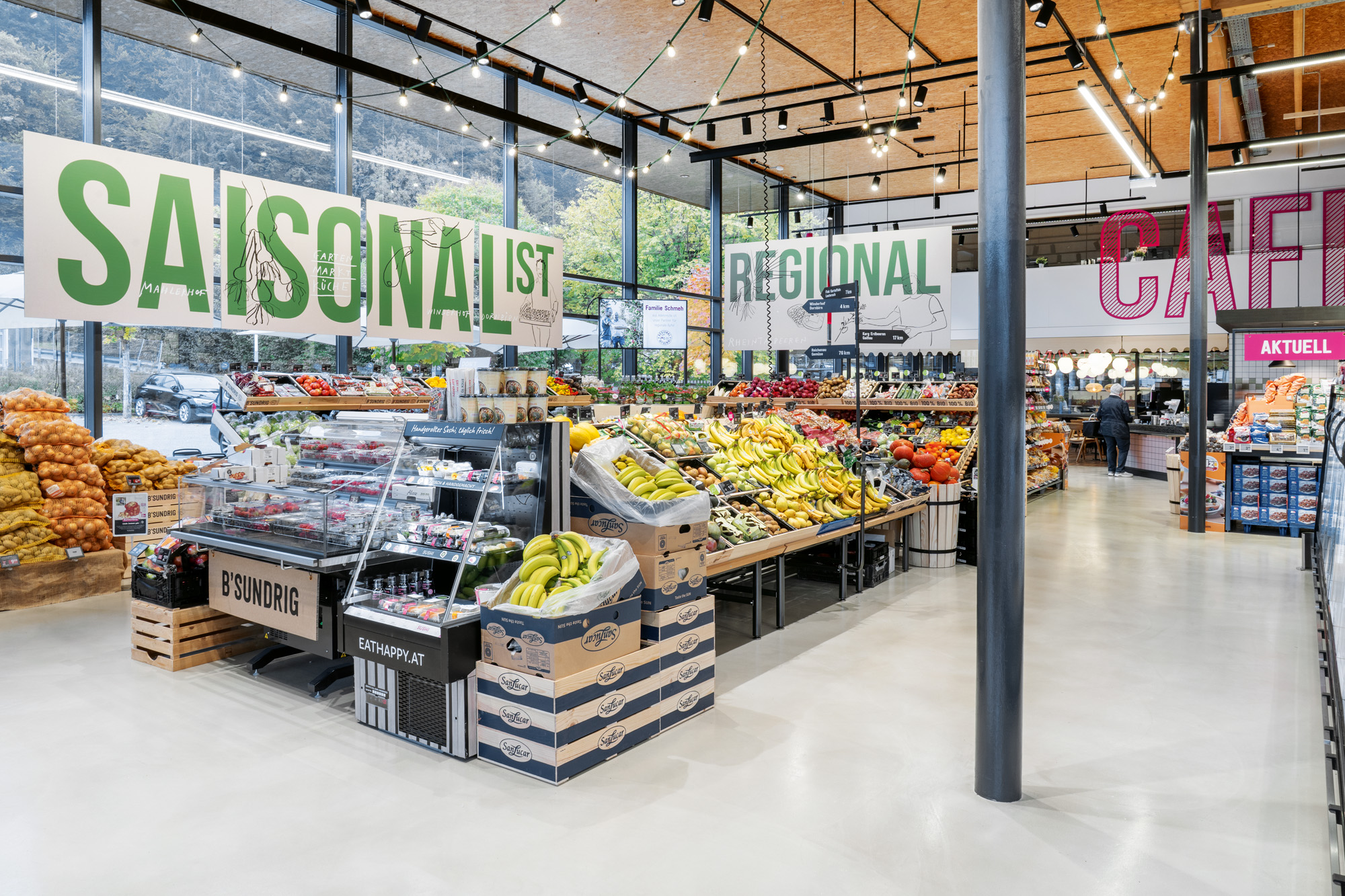 Im Zentrum des neuen Marktkonzepts stehen Regionalität, Nachhaltigkeit und ein breites Frischeangebot. Über 1500 heimische Spezialitäten stammen von regionalen Partnern. Besonders hervorgehoben werden die Obst- und Gemüseabteilung sowie die Frische- und Feinkosttheken. Ergänzt wird das Sortiment durch Sushi von EatHappy und eine erweiterte Weinabteilung. Im modernisierten Gusto-Bereich können Gäste vor Ort in entspannter Atmosphäre verweilen.
