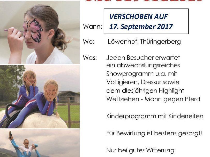 Der Pferdesportverein Blumenegg feiert heuer das 20-jährige Vereinsjubiläum und ladet daher zum Tag des Pferdes am 17.9.2017 ab 10:00 auf dem Löwenhof in Thüringerberg ein.