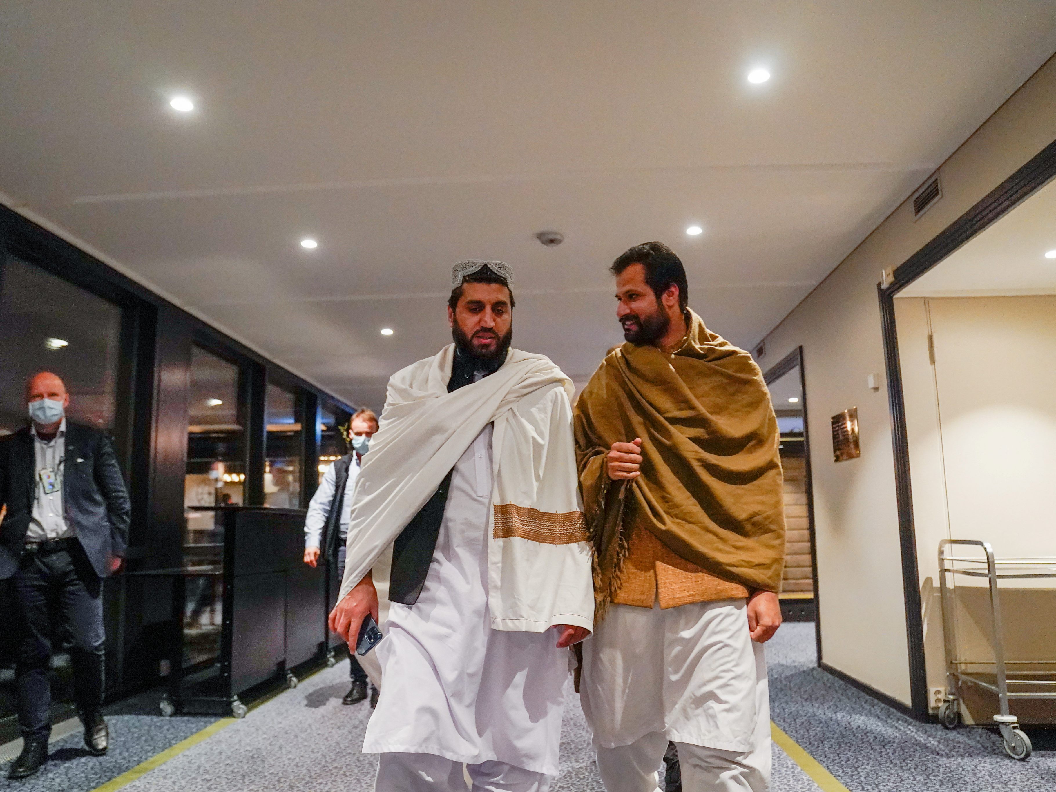 Vertreter der Taliban gehen im Hotel Soria Moria in Oslo spazieren.