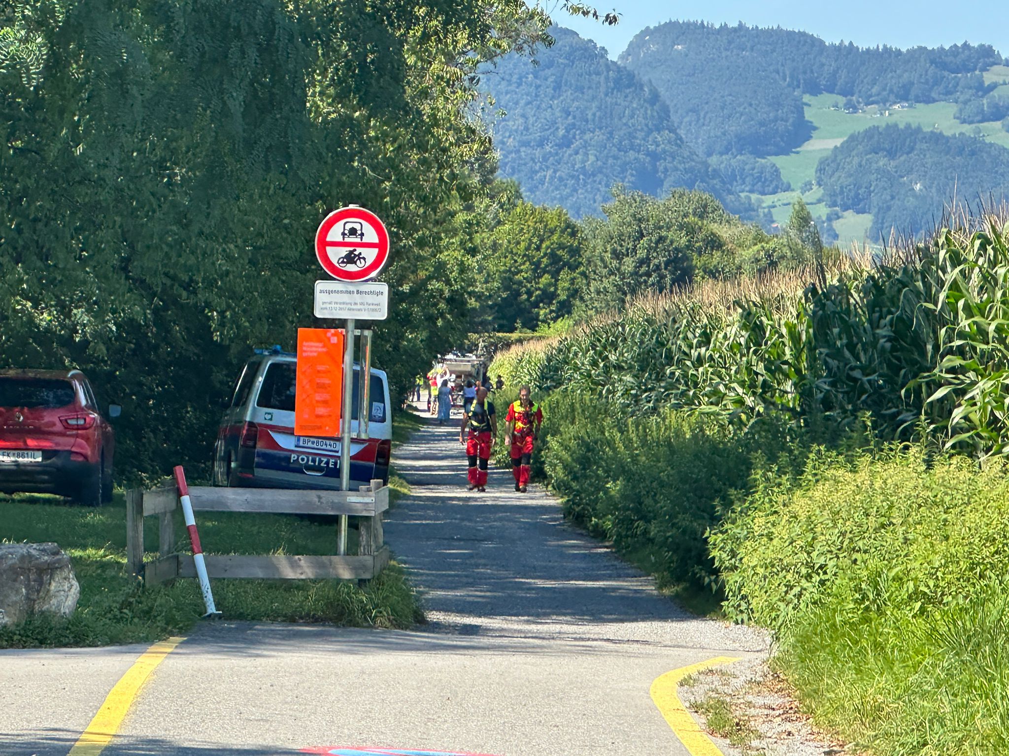 Die Polizei führte mehrere Befragungen durch, das Gebiet wurde großräumig abgesucht. Gegen 15.48 Uhr wurde die Suche abgebrochen.