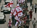 Die Kundgebung begann mit der georgischen Nationalhymne. Demonstranten fassten sich bei der Hand, streckten die Hände in die Höhe und riefen: “Georgien! Georgien!” Der Demonstrant Tengis Katsarawa sagte der Nachrichtenagentur AFP: “Wir bauen nicht besonders auf die Europäer. Wir verlassen uns vor allem auf die Vereinigten Staaten”. Viele Demonstranten schwenkten allerdings außer Fahnen der NATO-Militärallianz auch solche der Europäischen Union. Auch in anderen georgischen Städten und Ortschaften gab es Demonstrationen. Dazu aufgerufen hatten unter anderem Abgeordnete von Saakaschwilis Nationaler Einheitsbewegung.