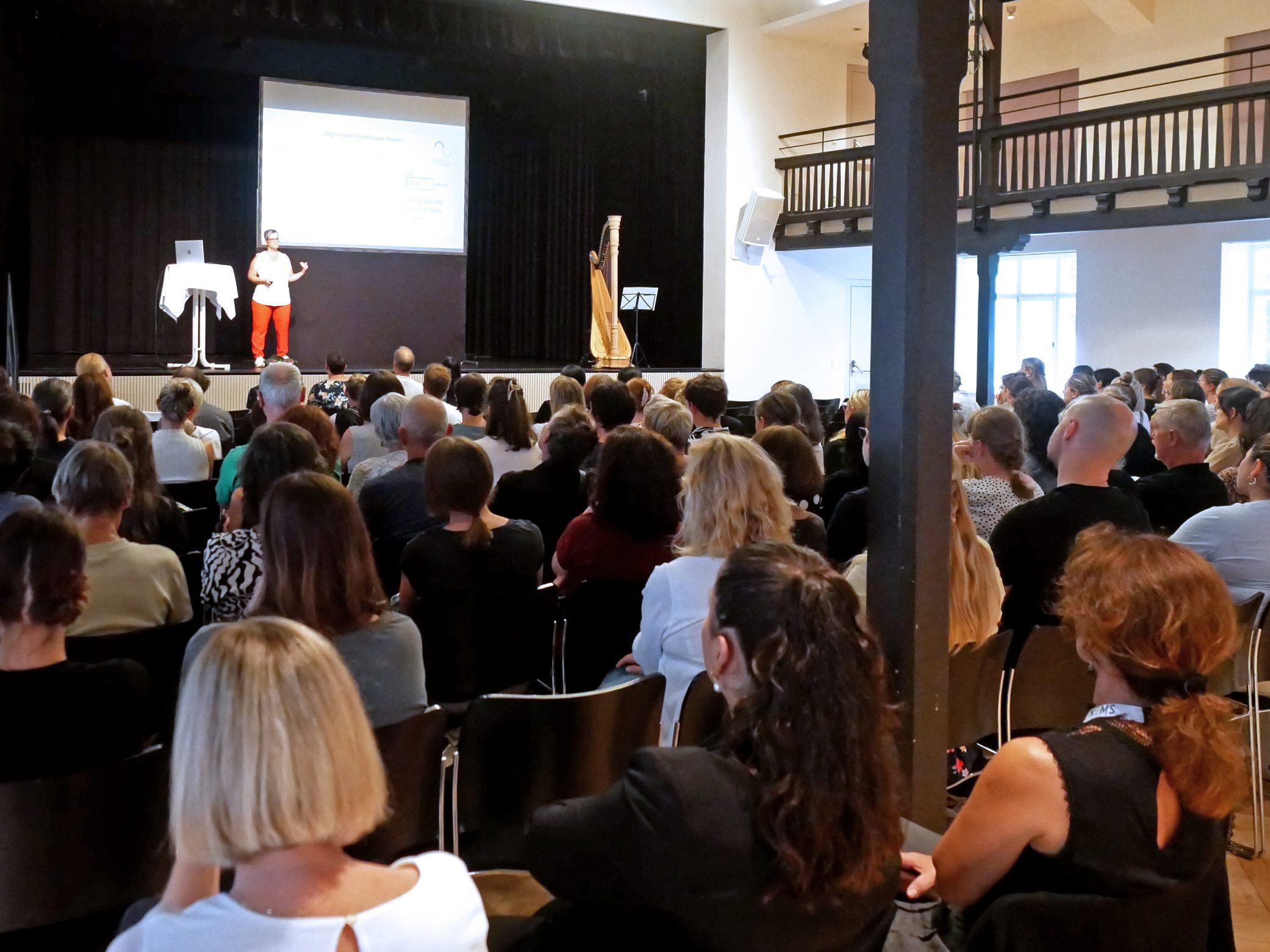 Nach einer musikalisch-heiteren Eröffnung durch Harfenspielerin Lisa Hilti stimmten Bürgermeister Dieter Egger und Bildungsstadträtin Maria Benzer mit herzlichen Worten auf den Abend ein. Der anschließende Vortrag von Margit Hinterreiter zum Thema „Teamwork mit Herz – Stress runter, Lebensfreude rauf“ bot spannende Impulse und viel Stoff zum Nachdenken. Bei einem feinen Buffet der Metzgerei Schatz klang der Abend in entspannter Atmosphäre aus – ganz im Sinne des Mottos: „mit Herz“.