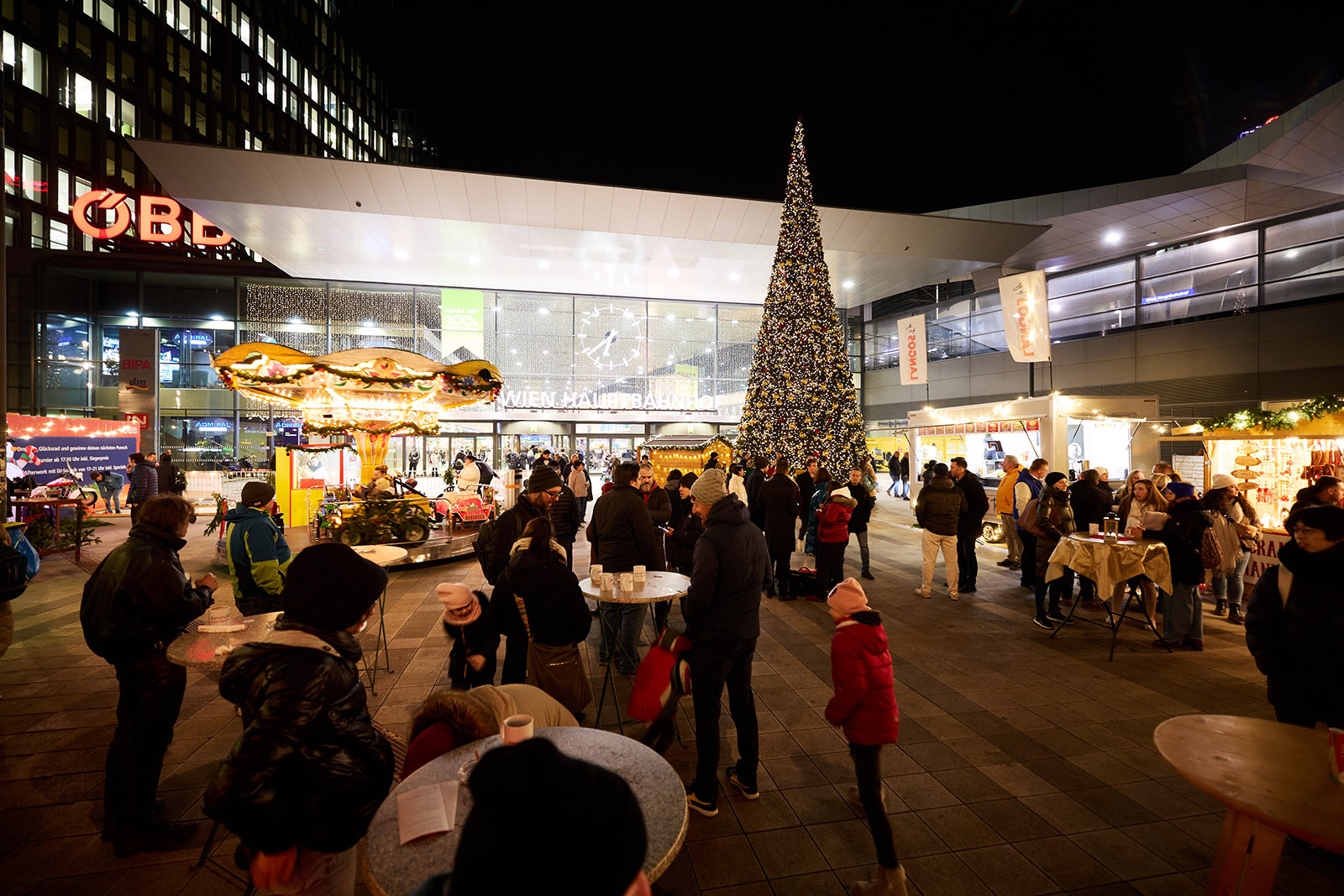 From mid-November, the Christmas market on the forecourt of Vienna Central Station opens its stalls again. Daily, the VolXFest team, together with ÖBB, invites you to enjoy punch, hot cocktails, and freshly baked delicacies. The focus of this market is a curling rink - here, individuals, groups of friends, company groups, and families can experience curling. Eight curling stones and a target are available, and reservations are possible. The offer includes not only classic market stalls with regional specialties and treats but also a children's carousel and weekly program highlights. The Christmas market is deliberately designed for family and group visits.
