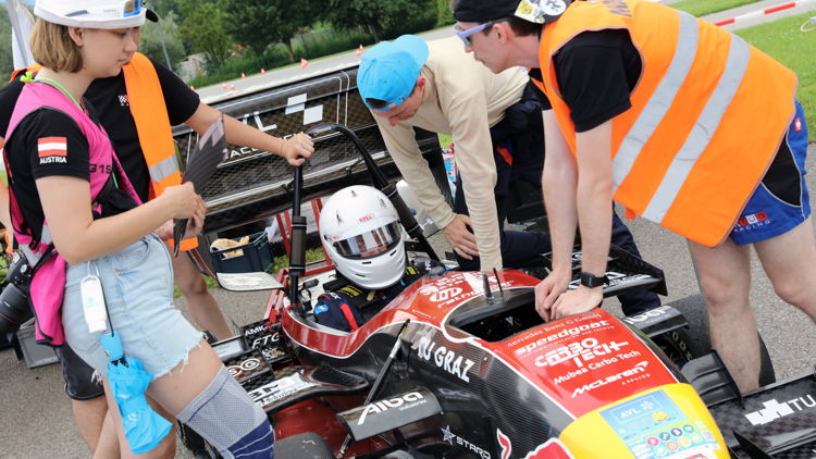 Studierende aus aller Welt treten mit selbst konstruierten und gebauten Rennwagen gegeneinander an. Jedes Jahr bauen die Studierenden mithilfe von Sponsoren einen Rennwagen – mit Elektroantrieb. Denn alle Teilnehmenden wollen mit zukunftsweisenden Technologien nachhaltige Konzepte entwickeln und mit systematischen Lösungen die Umweltbelastung dieser Branche reduzieren.