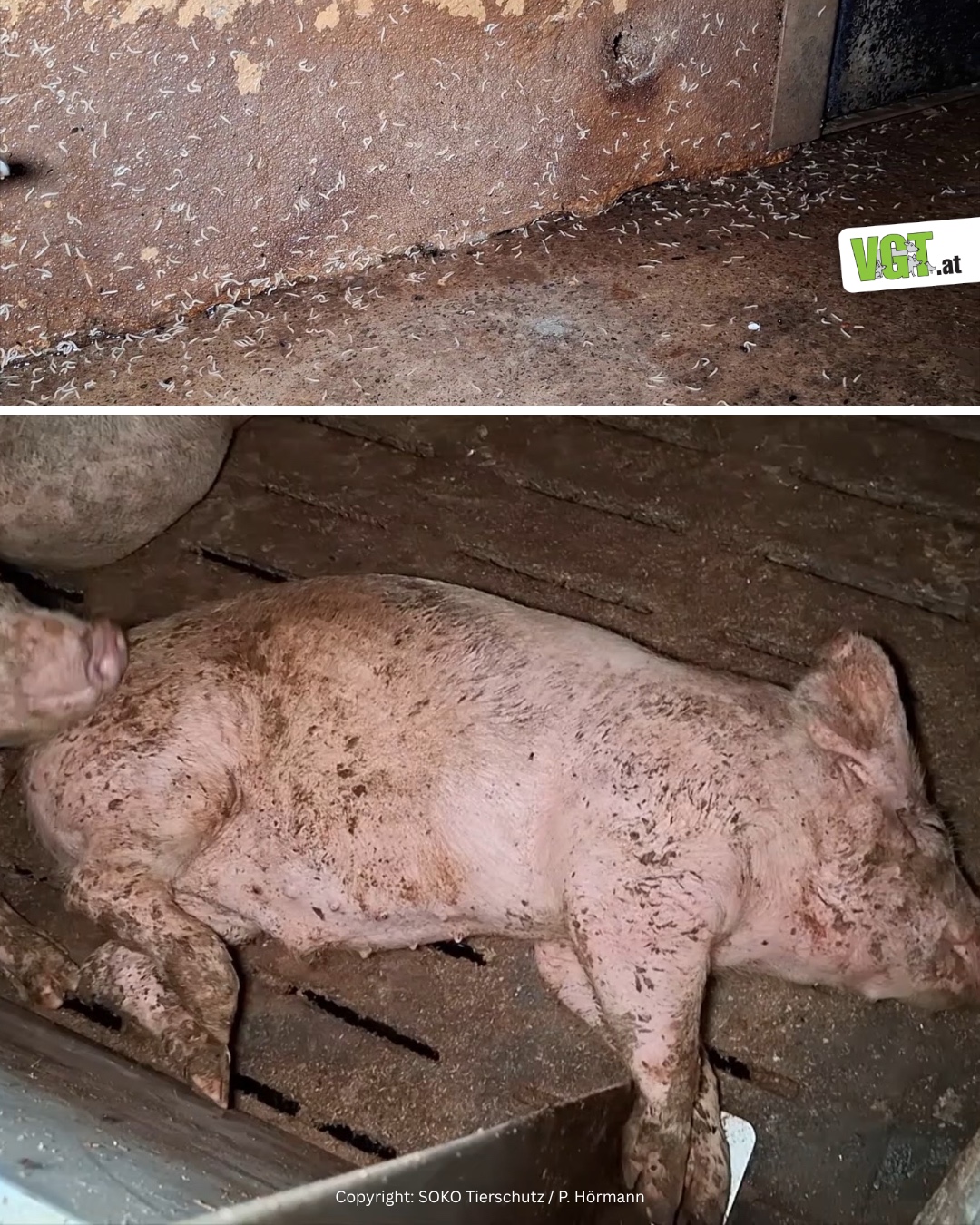 Nun zeigt sich: Tiere aus diesem Betrieb wurden offenbar in einem Schlachthof in Straß in der Südsteiermark verarbeitet. Deutsche Tierschutz-Aktivisten dokumentierten am Montag die Verladung von Schweinen am betroffenen Hof. Der VEREIN GEGEN TIERFABRIKEN (VGT) in Österreich wurde über den geplanten Transport informiert. Tierschützer filmten daraufhin die Ankunft des Tiertransporters nach über 550 Kilometern Fahrtstrecke in Straß.