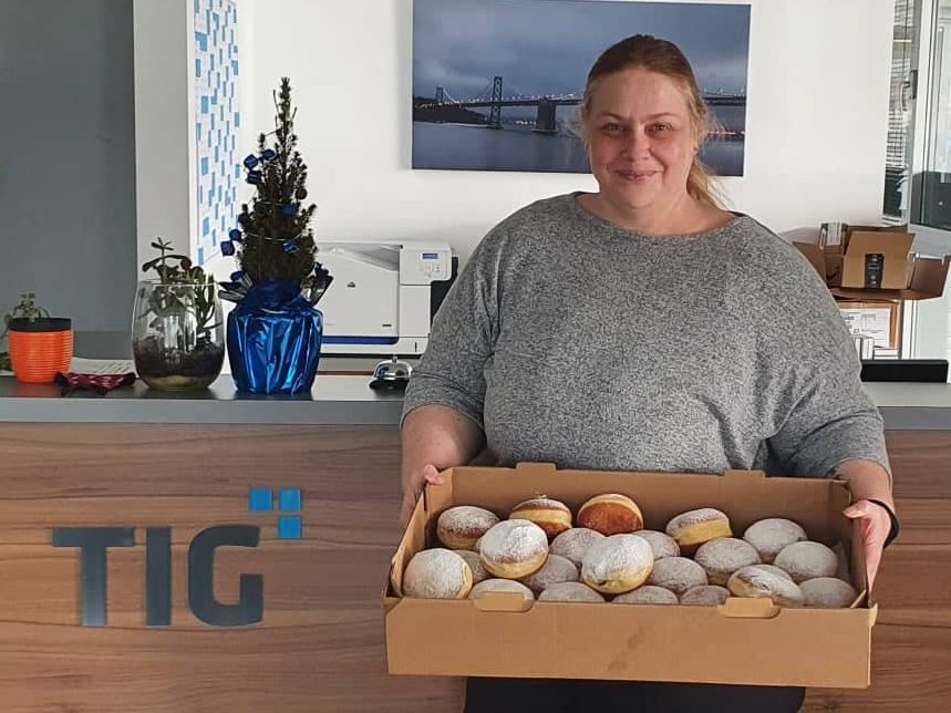 Wer seine Arbeitskollegen, Mitschüler oder die morgendliche Gymnastik-Gruppe überraschen wollte, konnte sich unlängst zur großen Krapfen-Aktion anmelden. Eine der glücklichen Gewinnerinnen ist Bianca Lange. Sie ließ sich die Chance nicht nehmen, nahm am Gewinnspiel teil und gewann prompt eine ganze Menge Krapfen für das Team von TIG Rankweil. Wir gratulieren!