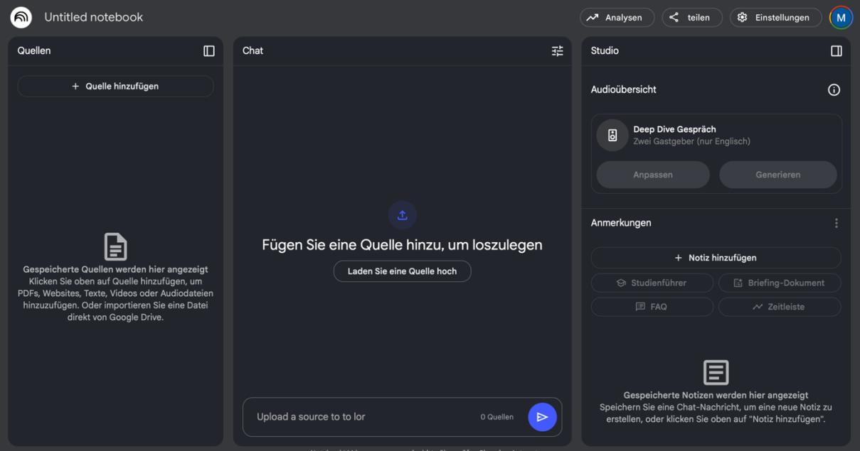 Wer sagt, dass Lernen trocken und langweilig sein muss? Mit NotebookLM kannst du deine Unterlagen in interaktive Lernerlebnisse verwandeln. Lade einfach deine Unterlagen (bis zu 300 Dateien) wie PDFs, Audio-Dateien oder sogar YouTube-Videos hoch und erlebe Lernen auf eine ganz neue Art und Weise: Beantworte von der KI erstellte Quiz oder lass dir Themen einfach erklären.