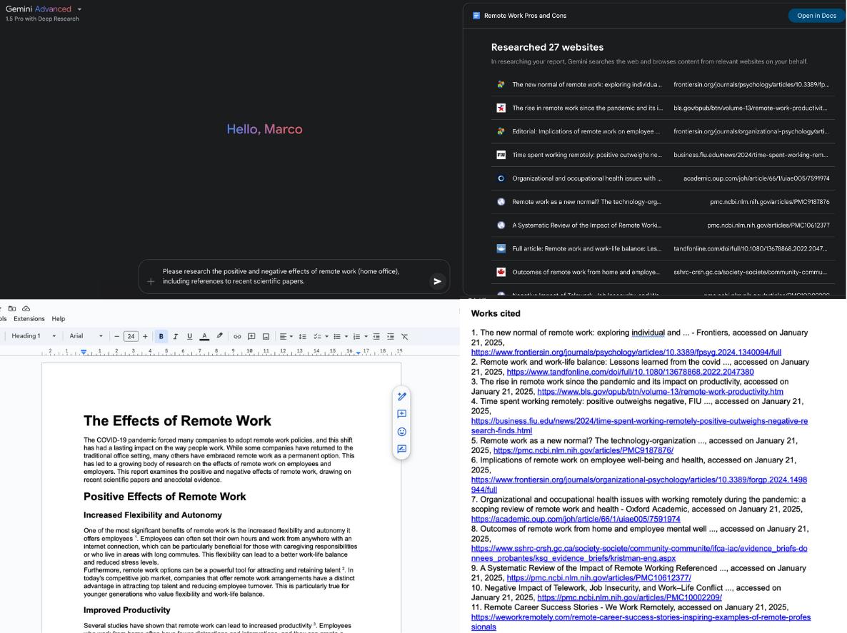 Schluss mit endlosen Google-Suchen und unübersichtlichen Ergebnissen – dank Google Deep Research! Dieses Feature des Gemini-Modells agiert wie dein persönlicher Forschungsassistent und durchforstet selbstständig (!) das Internet für dich. Außerdem erstellt es umfassende Berichte zum Wunschthema, sogar mit Zitaten und Quellangaben usw. So, wie du es auch machen würdest, nur viel schneller.