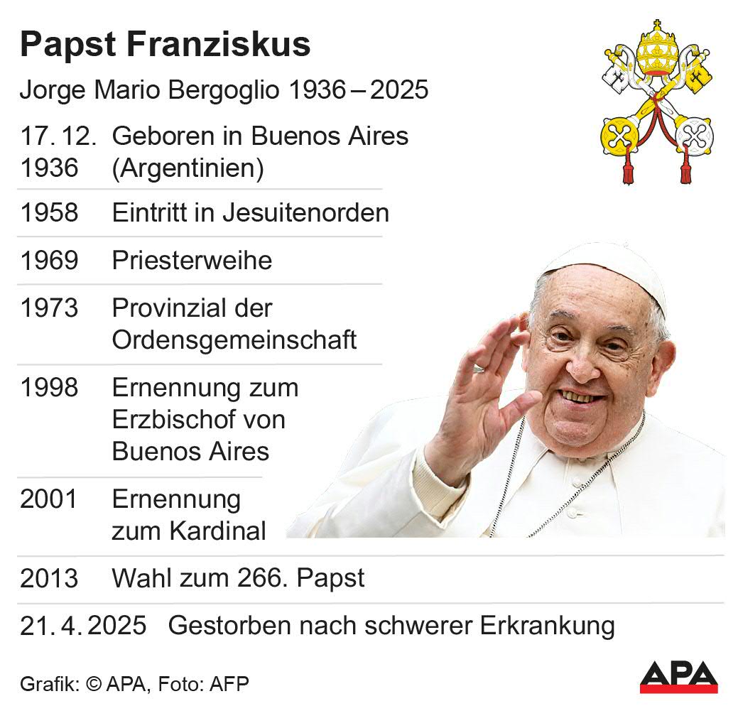 Im Laufe der Woche wird der Leichnam in den Petersdom überführt, wo dann Gläubige aus aller Welt am offenen Sarg Abschied nehmen können. Die Trauerfeier für den am Ostermontag verstorbenen Papst Franziskus wird am Samstag um 10.00 Uhr in Rom stattfinden. Das teilte der Vatikan Dienstagvormittag mit. Auch US-Präsident Donald Trump hat sein Kommen angekündigt.