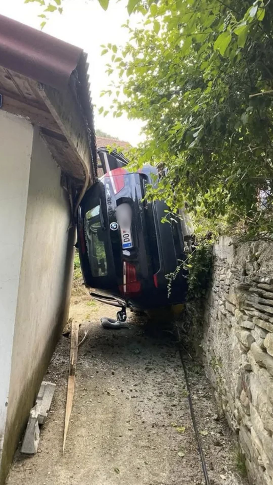 Ersten Informationen zufolge war der Pkw am Straßenrand abgestellt, als er sich plötzlich selbstständig in Bewegung setzte. Die örtliche Polizei geht davon aus, dass die Handbremse nicht korrekt angezogen war. Das Fahrzeug durchbrach daraufhin eine niedrige Begrenzung und rutschte in die enge Lücke zwischen zwei Häusern.